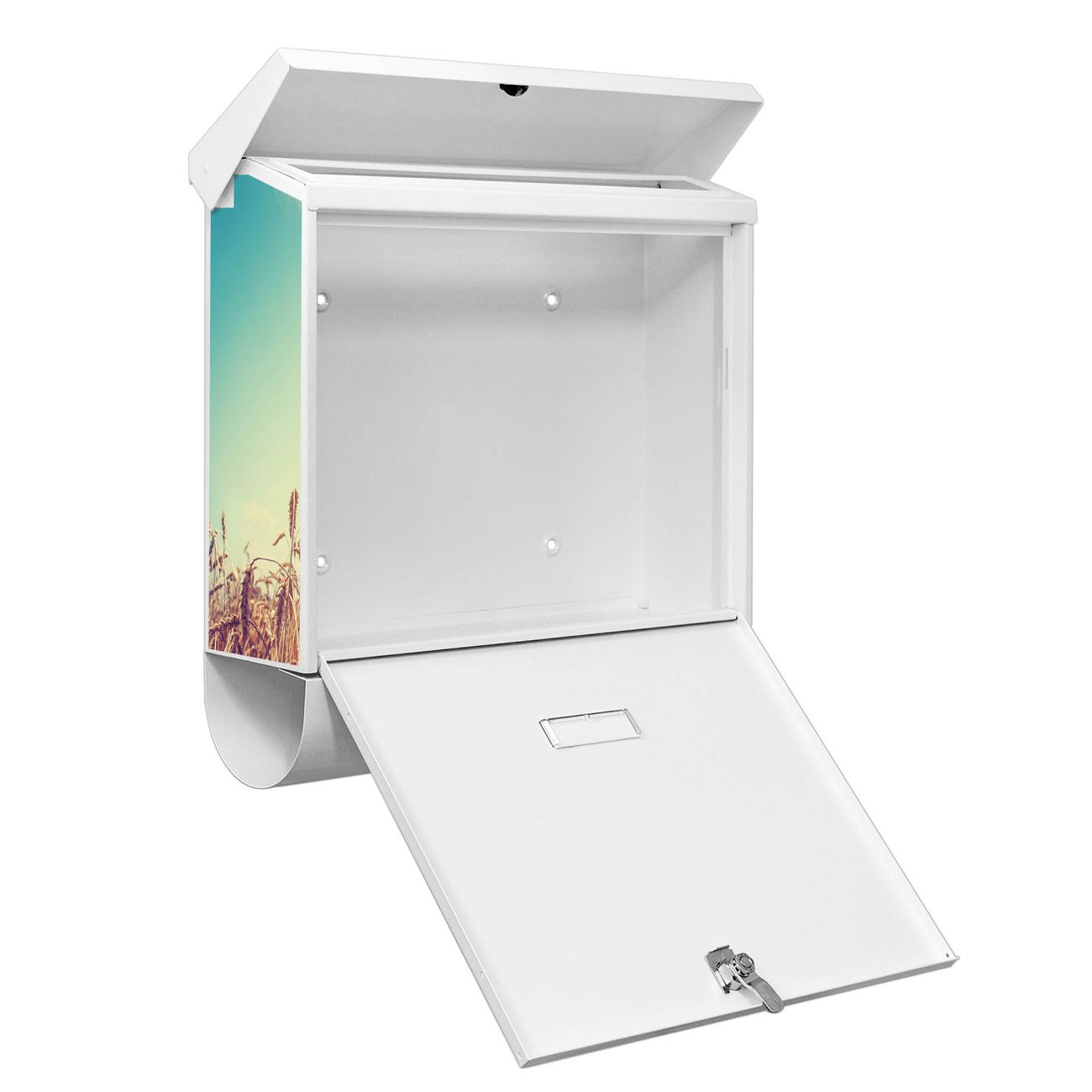 Sie können diesen Briefkasten sowohl als Wandbriefkasten montieren oder mit dem passenden Ständer als Standbriefkasten einbetonieren. Die gestaltete Motivfolie ist absolut wetterfest, UV-beständig und ein zusätzliches Schutzlaminat bewahrt Ihren Briefkasten vor unnötigen Kratzern. Das Namensschild kann frei beschriftet werden.
