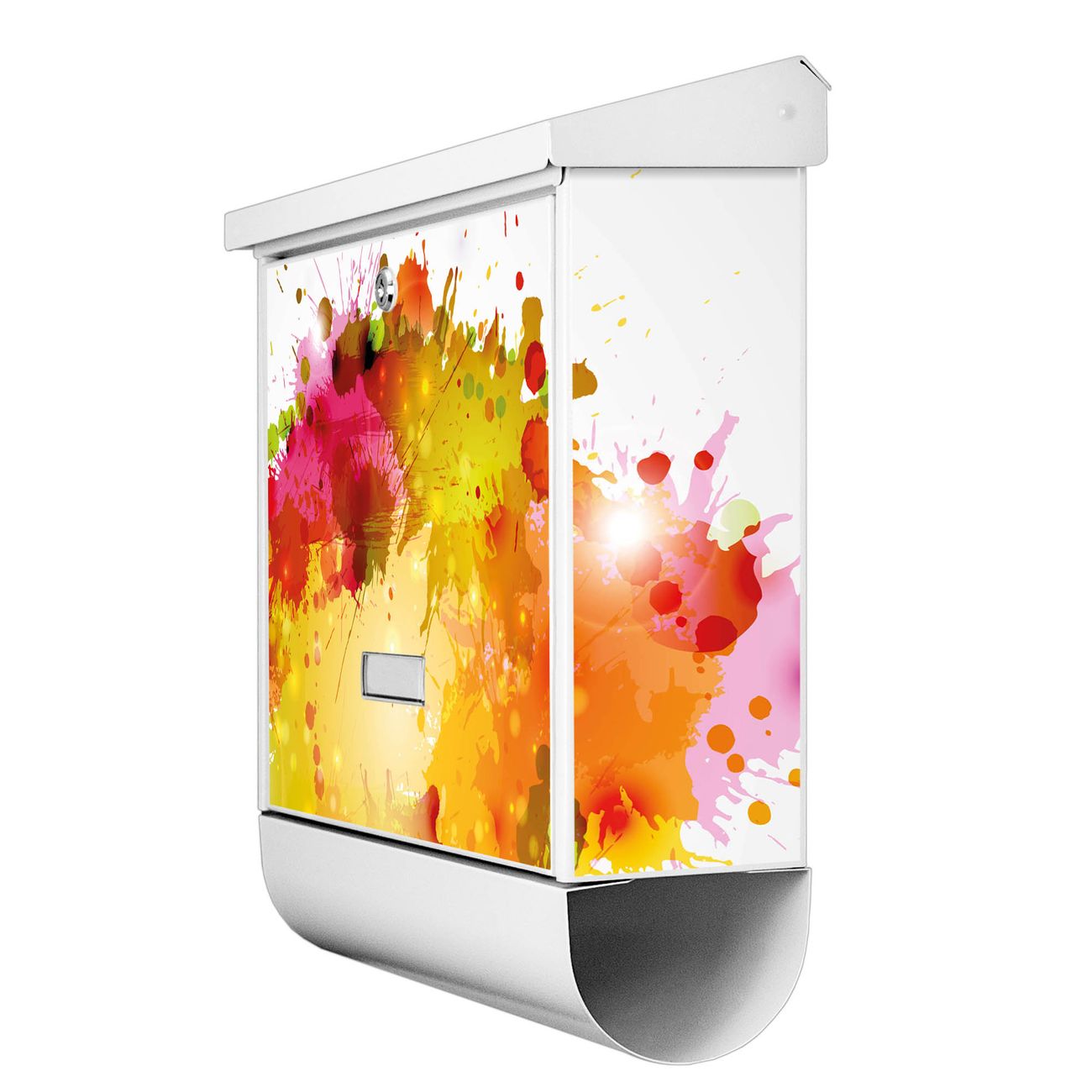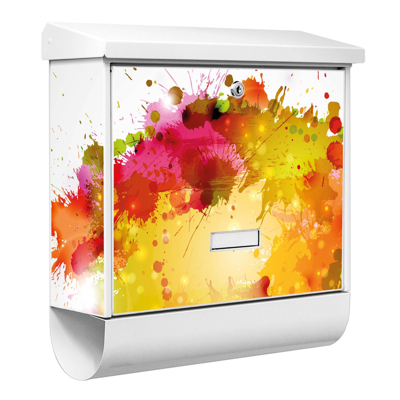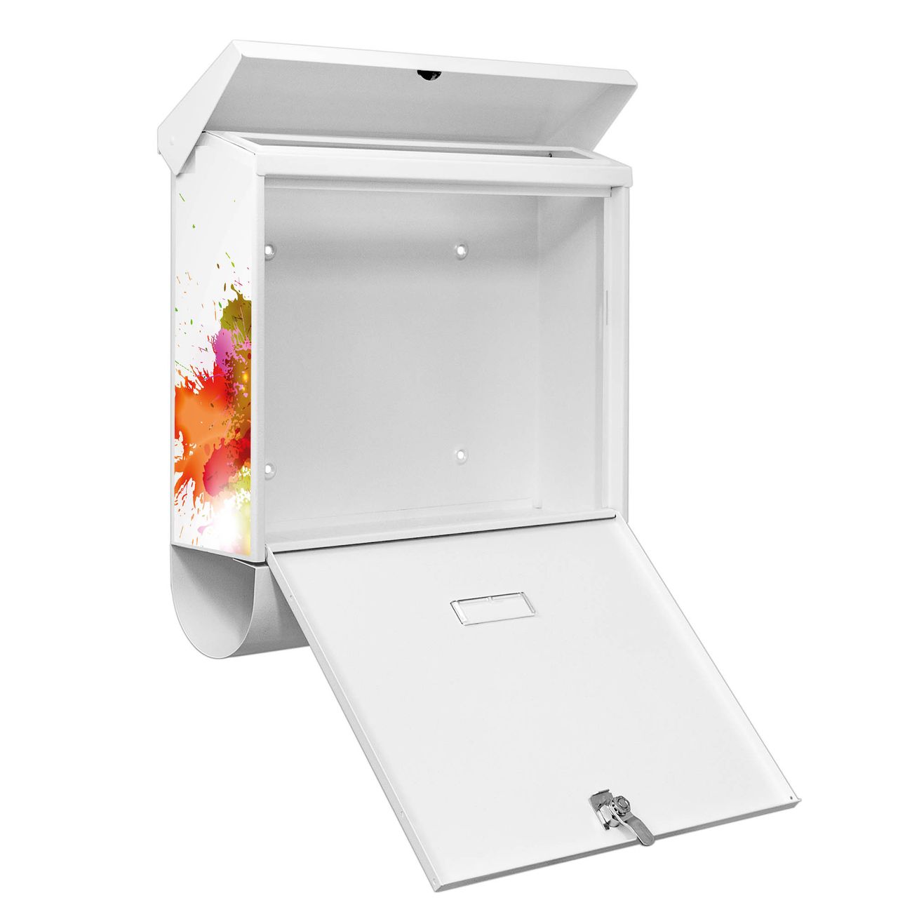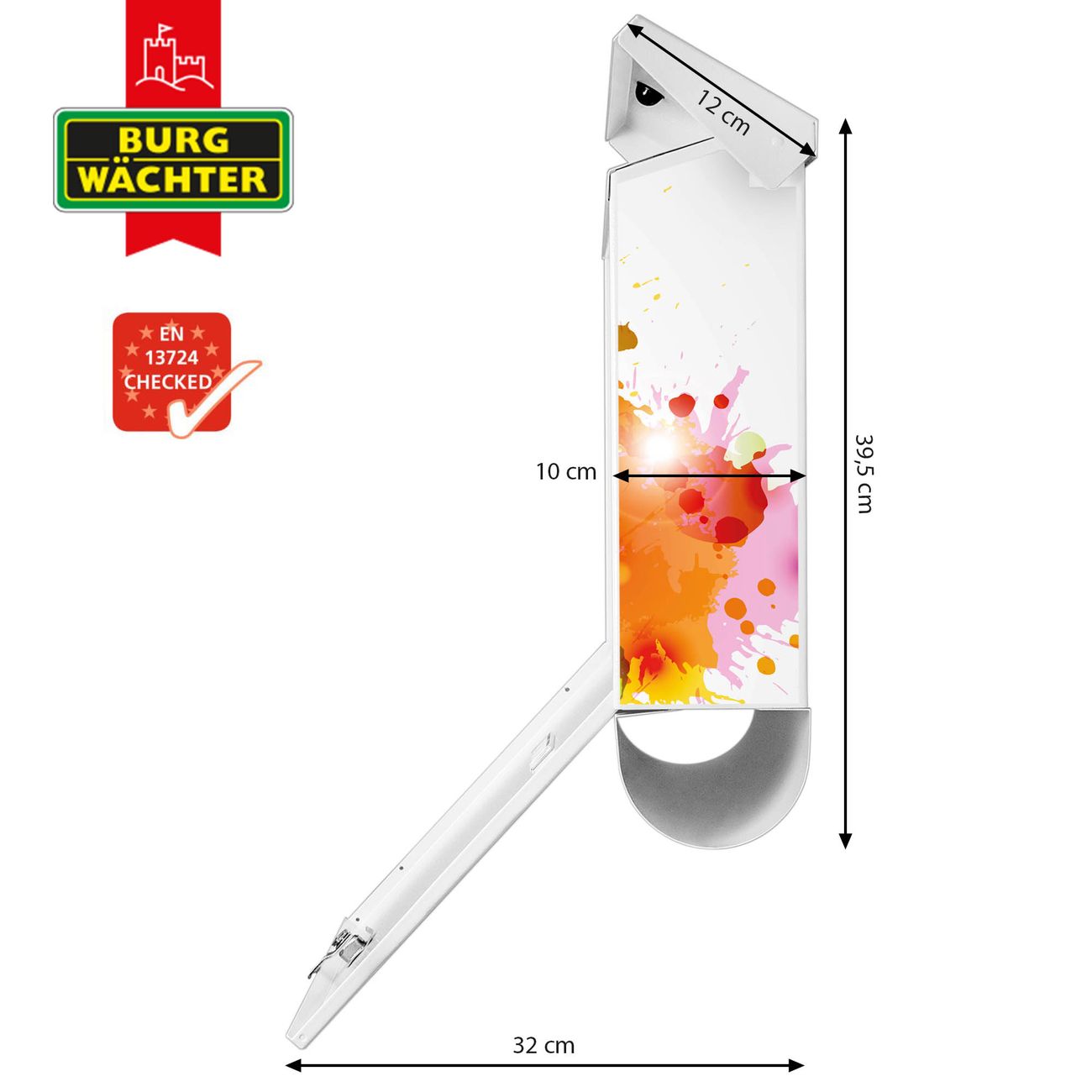 Der BURG-WÄCHTER Stahl Briefkasten mit Farbkleckse Motiv bietet Ihnen mit seinem Fassungsvermögen genügend Platz auch für große A4 Sendungen und Zeitschriften. Das integrierte Regendach schützt Ihre Post vor dem Eindringen von Regen.