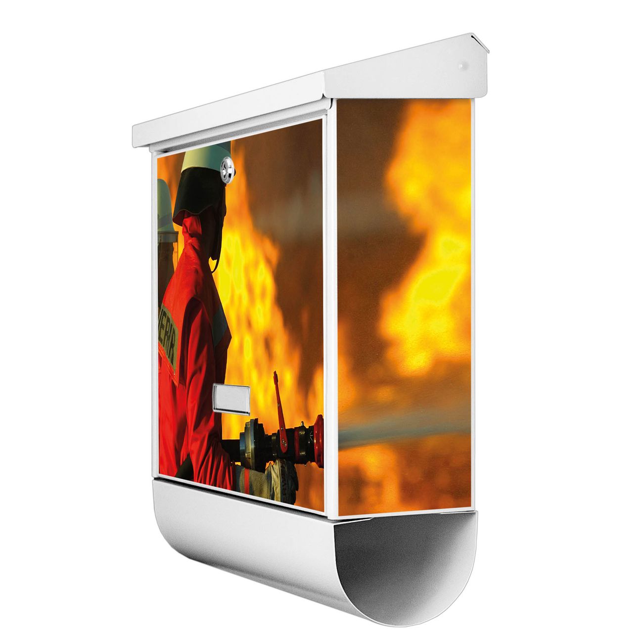 Der BURG-WÄCHTER Stahl Briefkasten mit Feuer Motiv bietet Ihnen mit seinem Fassungsvermögen genügend Platz auch für große A4 Sendungen und Zeitschriften. Das integrierte Regendach schützt Ihre Post vor dem Eindringen von Regen.