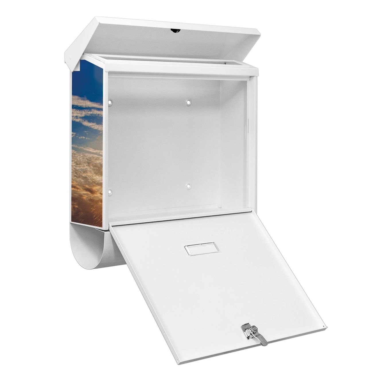 Der Briefkasten besteht aus Stahl, einem hochwertigen Material das äußerst unempfindlich gegenüber Witterungseinflüssen ist. Das Motiv besteht aus einer wetter- und UV-festen Folie, die Ihren Briefkasten zusätzlich vor Kratzern schützt. Der Postkasten ist 42,5cm hoch, 38cm breit und 11,5cm tief. Der Briefeinwurf ist 33,2cm x 3,1cm, Format DIN C4. Der Briefkasten wird mit Montagematerial und zwei Schlüsseln geliefert.