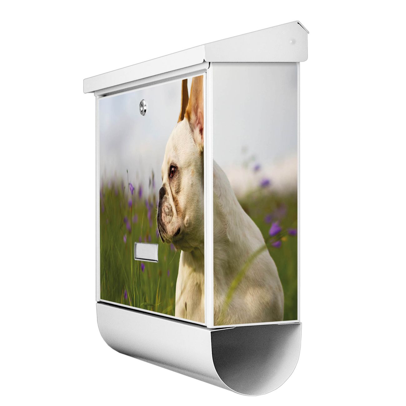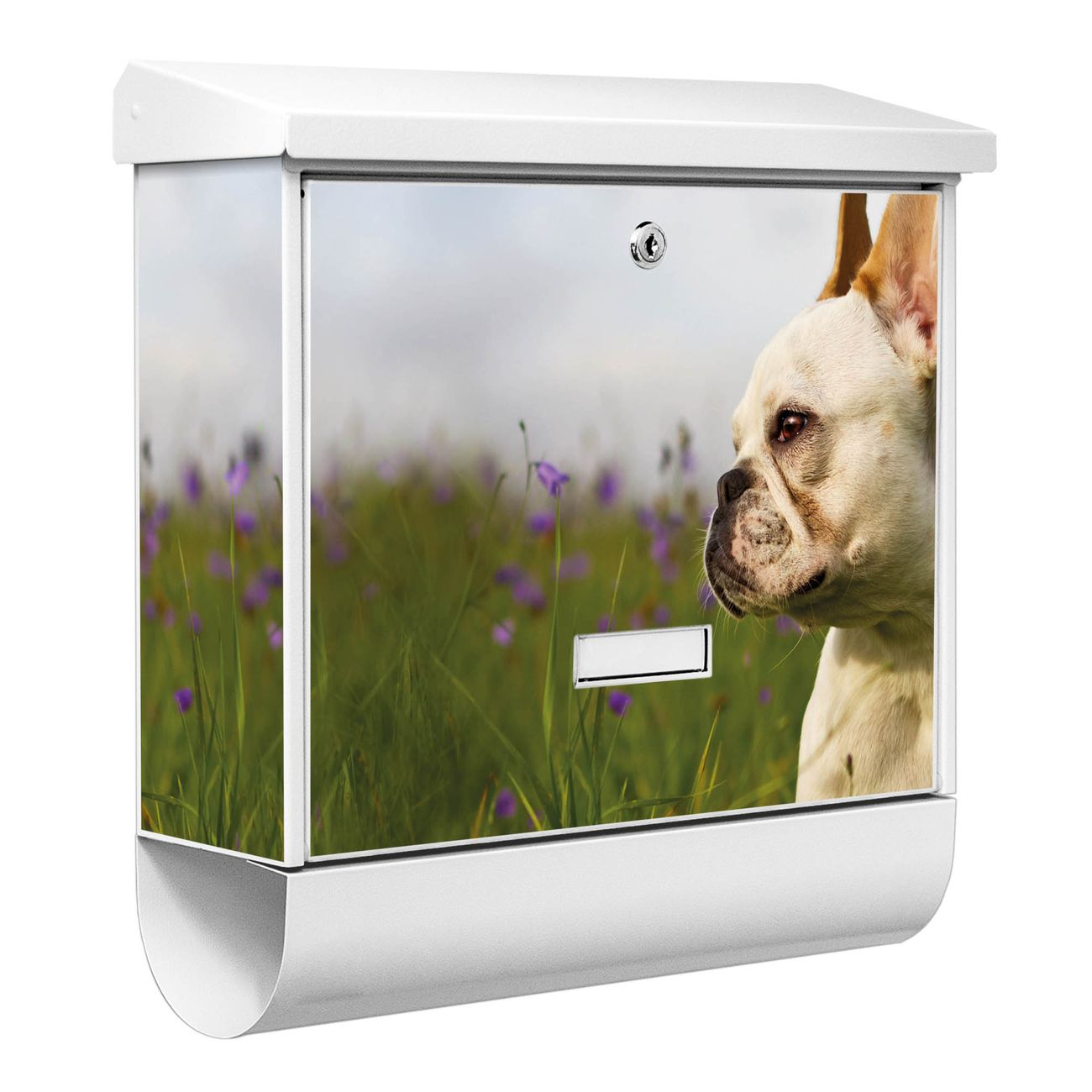 Der BURG-WÄCHTER Stahl Briefkasten mit Französische Bulldogge Motiv bietet Ihnen mit seinem Fassungsvermögen genügend Platz auch für große A4 Sendungen und Zeitschriften. Das integrierte Regendach schützt Ihre Post vor dem Eindringen von Regen.