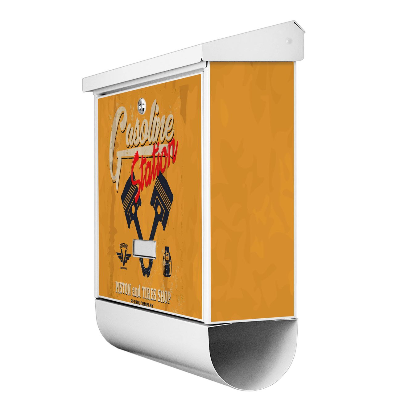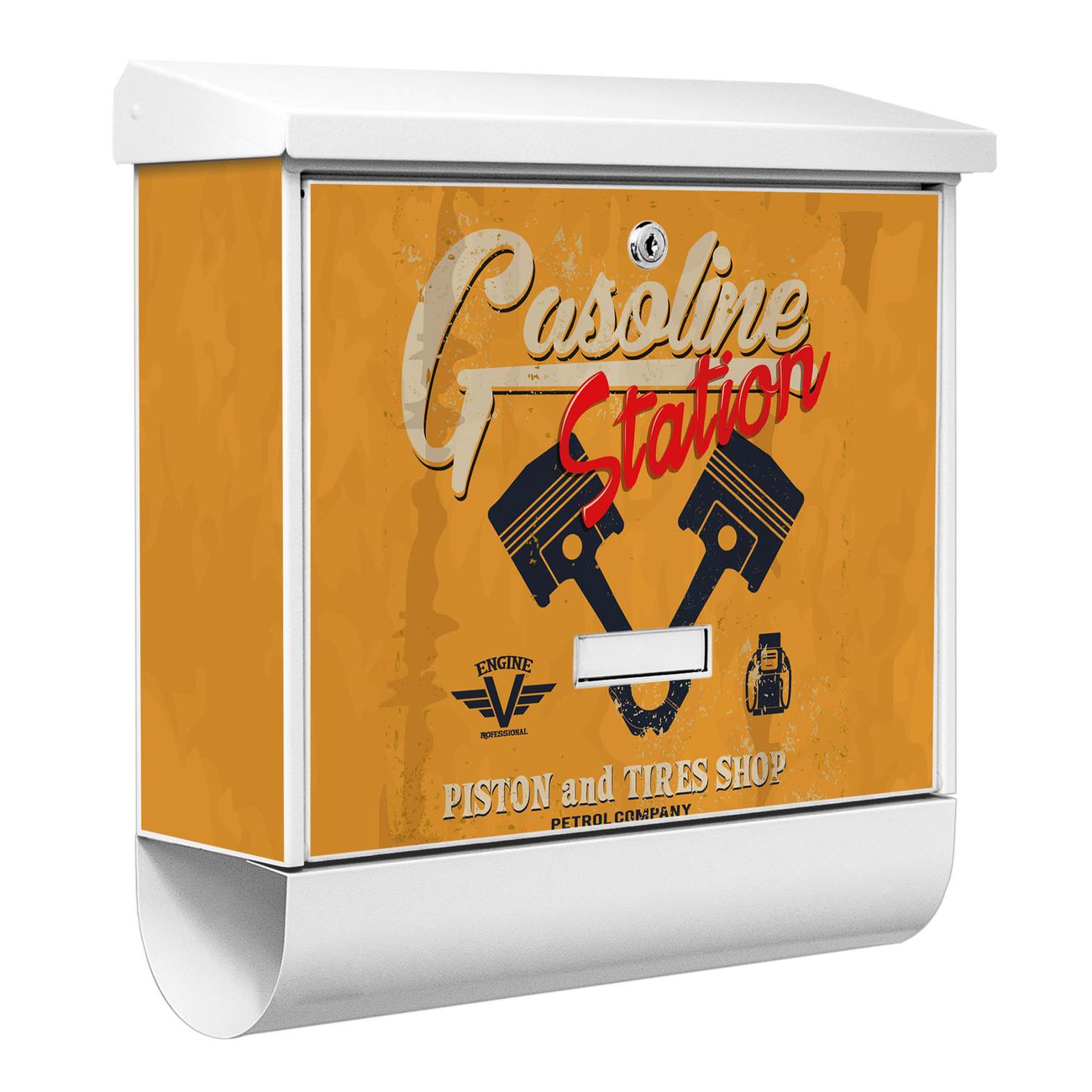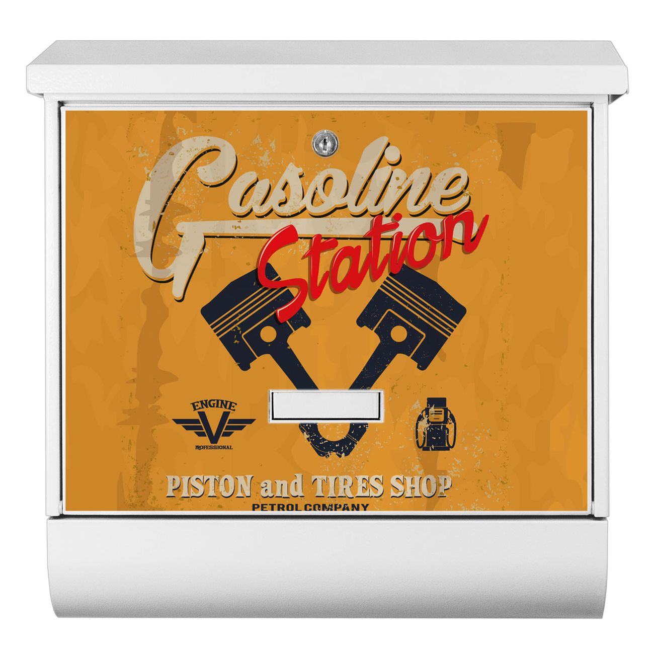 Der BURG-WÄCHTER Stahl Briefkasten mit Gasoline Station Motiv bietet Ihnen mit seinem Fassungsvermögen genügend Platz auch für große A4 Sendungen und Zeitschriften. Das integrierte Regendach schützt Ihre Post vor dem Eindringen von Regen.