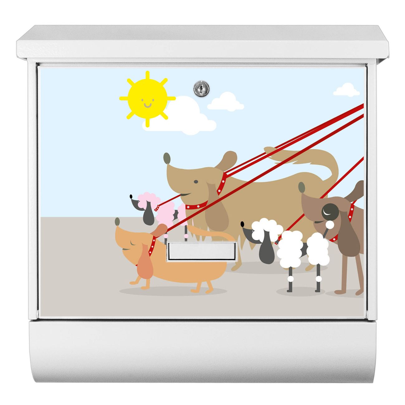 Sie können diesen Briefkasten sowohl als Wandbriefkasten montieren oder mit dem passenden Ständer als Standbriefkasten einbetonieren. Die gestaltete Motivfolie ist absolut wetterfest, UV-beständig und ein zusätzliches Schutzlaminat bewahrt Ihren Briefkasten vor unnötigen Kratzern. Das Namensschild kann frei beschriftet werden.