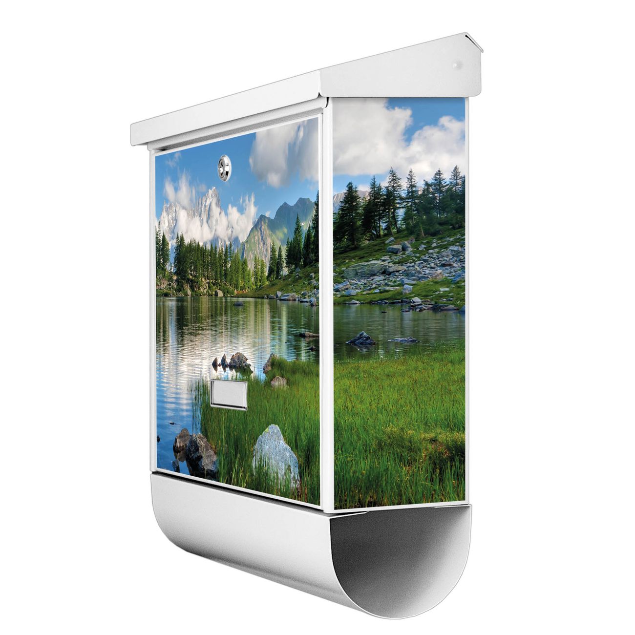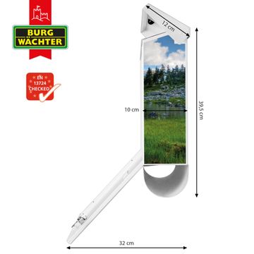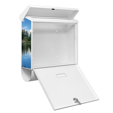 Der BURG-WÄCHTER Stahl Briefkasten mit Gebirgssee Motiv bietet Ihnen mit seinem Fassungsvermögen genügend Platz auch für große A4 Sendungen und Zeitschriften. Das integrierte Regendach schützt Ihre Post vor dem Eindringen von Regen.