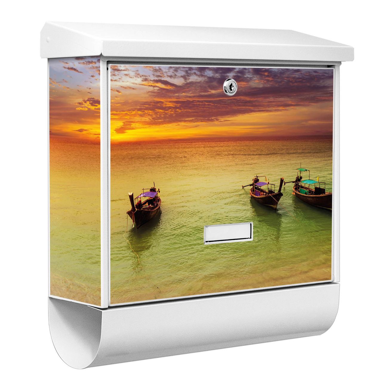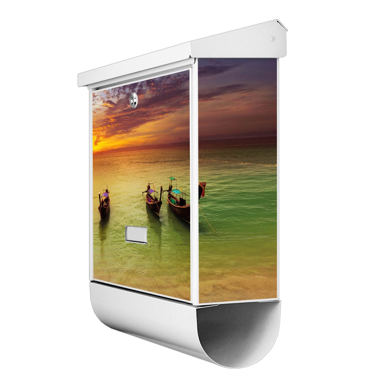 Der BURG-WÄCHTER Stahl Briefkasten mit Golf Von Thailand Motiv bietet Ihnen mit seinem Fassungsvermögen genügend Platz auch für große A4 Sendungen und Zeitschriften. Das integrierte Regendach schützt Ihre Post vor dem Eindringen von Regen.