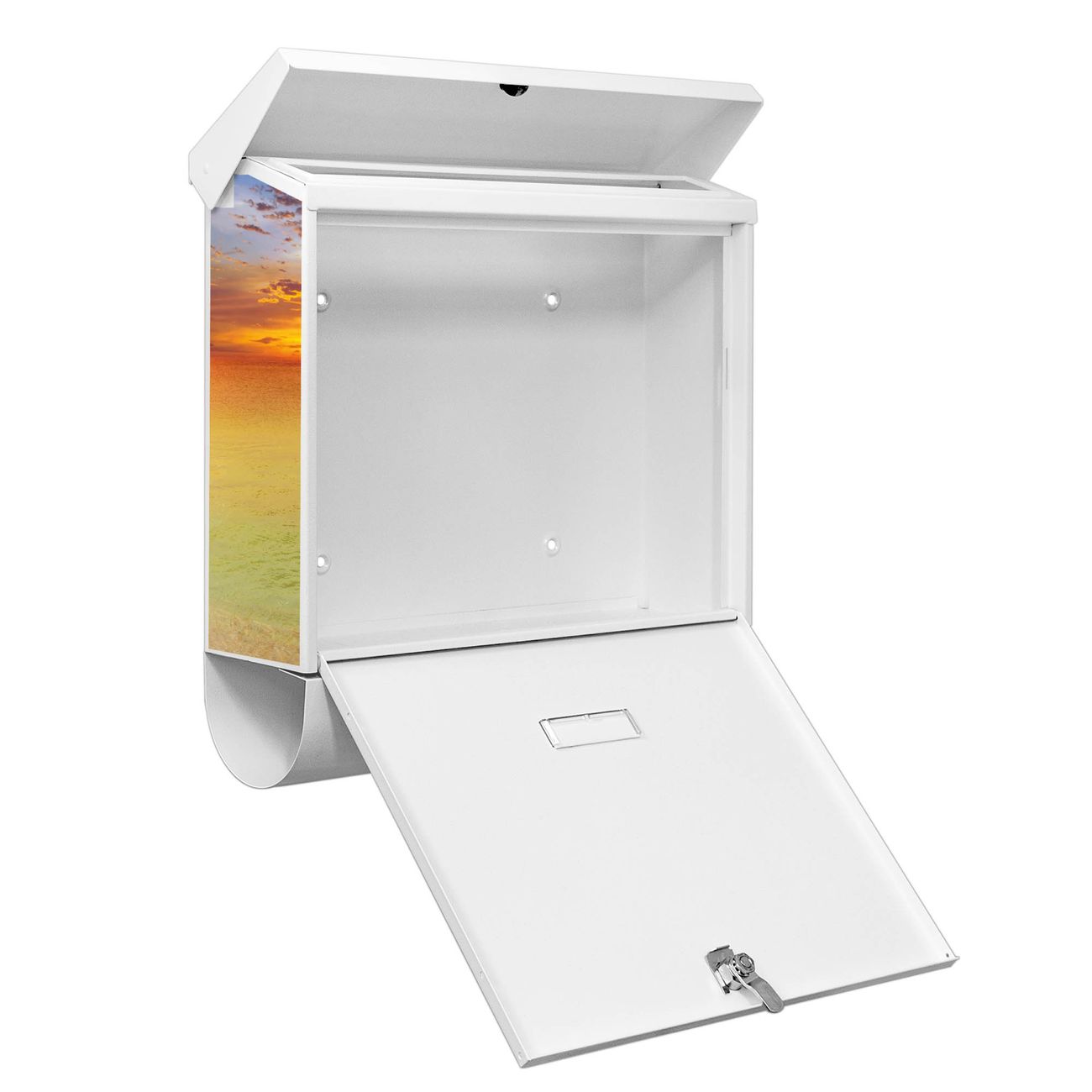 Sie können diesen Briefkasten sowohl als Wandbriefkasten montieren oder mit dem passenden Ständer als Standbriefkasten einbetonieren. Die gestaltete Motivfolie ist absolut wetterfest, UV-beständig und ein zusätzliches Schutzlaminat bewahrt Ihren Briefkasten vor unnötigen Kratzern. Das Namensschild kann frei beschriftet werden.
