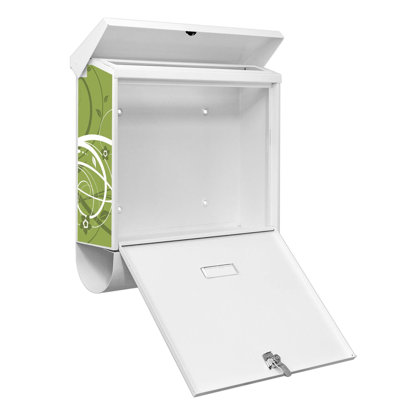 Der BURG-WÄCHTER Stahl Briefkasten mit Grüne Blüten Motiv bietet Ihnen mit seinem Fassungsvermögen genügend Platz auch für große A4 Sendungen und Zeitschriften. Das integrierte Regendach schützt Ihre Post vor dem Eindringen von Regen.