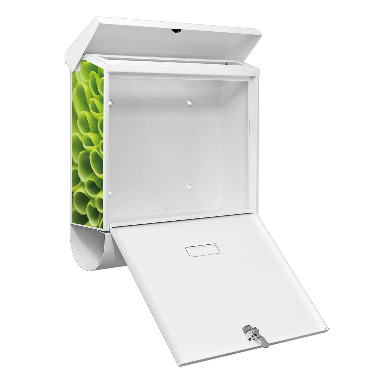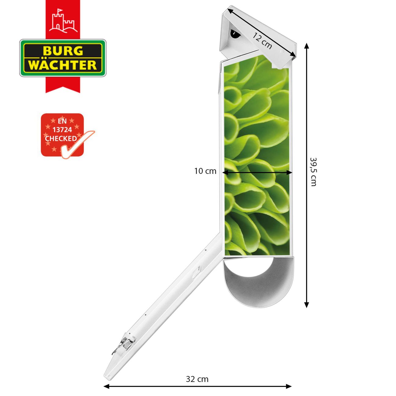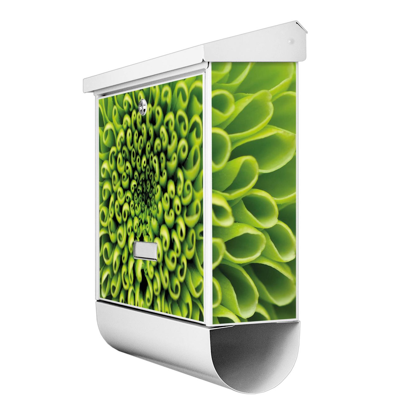 Der BURG-WÄCHTER Stahl Briefkasten mit Grüne Chrysantheme Motiv bietet Ihnen mit seinem Fassungsvermögen genügend Platz auch für große A4 Sendungen und Zeitschriften. Das integrierte Regendach schützt Ihre Post vor dem Eindringen von Regen.