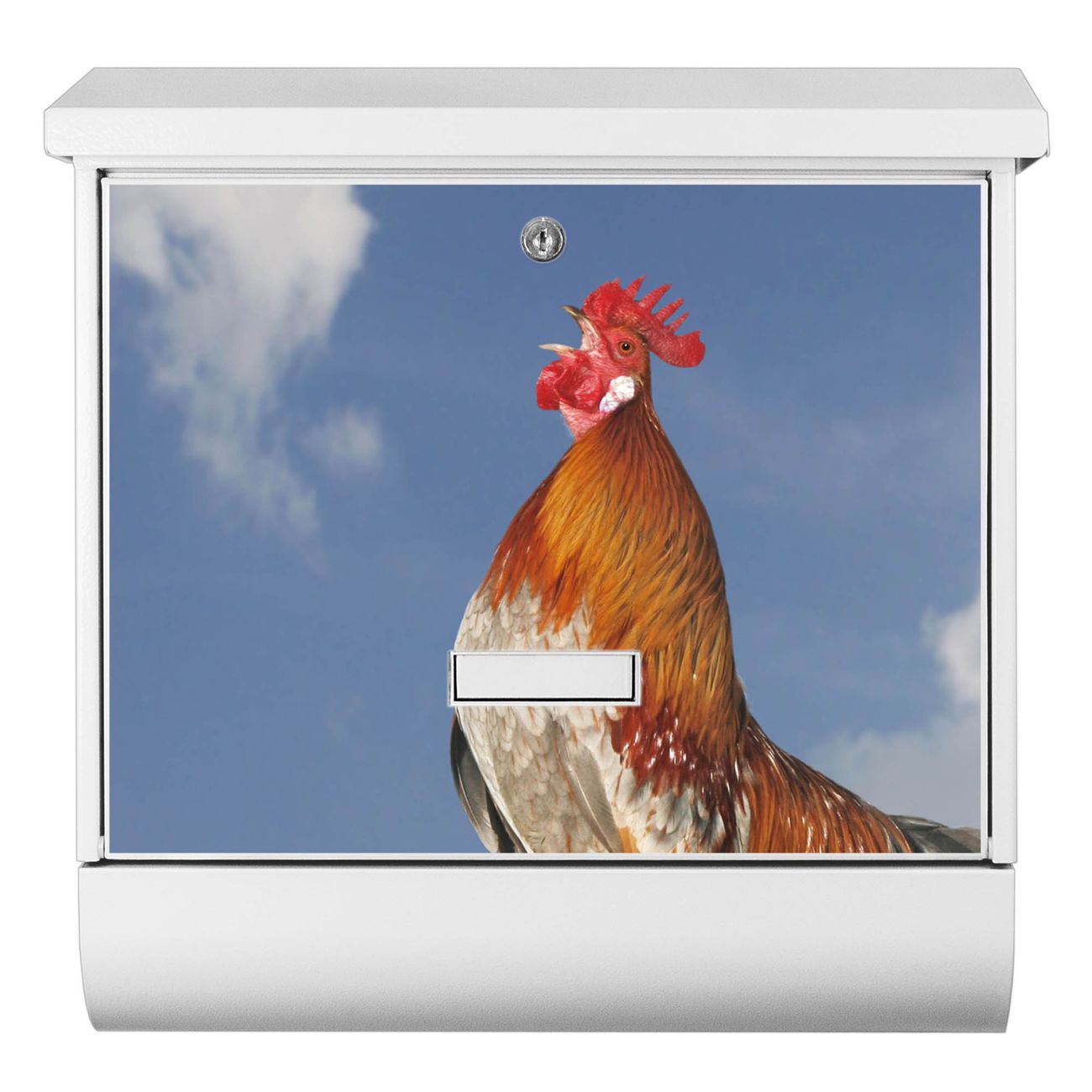 Der BURG-WÄCHTER Stahl Briefkasten mit Hahn Motiv bietet Ihnen mit seinem Fassungsvermögen genügend Platz auch für große A4 Sendungen und Zeitschriften. Das integrierte Regendach schützt Ihre Post vor dem Eindringen von Regen.