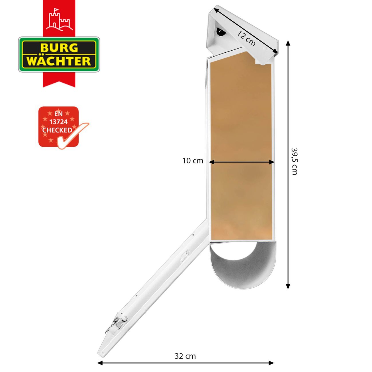 Der BURG-WÄCHTER Stahl Briefkasten mit Henryk 2 Motiv bietet Ihnen mit seinem Fassungsvermögen genügend Platz auch für große A4 Sendungen und Zeitschriften. Das integrierte Regendach schützt Ihre Post vor dem Eindringen von Regen.