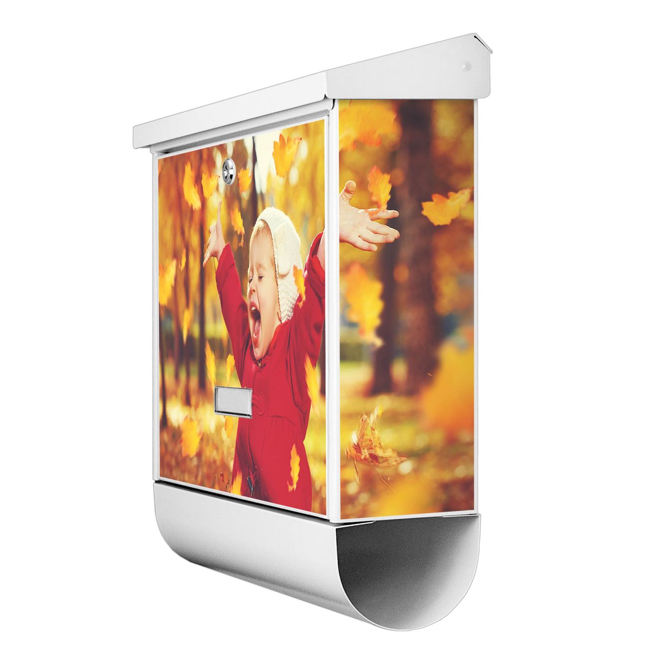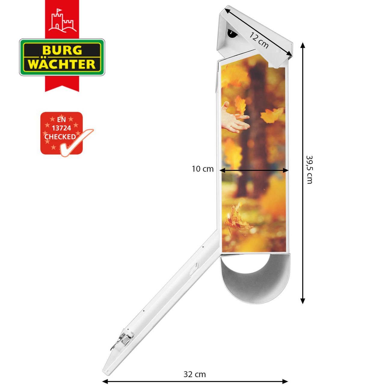 Der BURG-WÄCHTER Stahl Briefkasten mit Herbstfreude Motiv bietet Ihnen mit seinem Fassungsvermögen genügend Platz auch für große A4 Sendungen und Zeitschriften. Das integrierte Regendach schützt Ihre Post vor dem Eindringen von Regen.