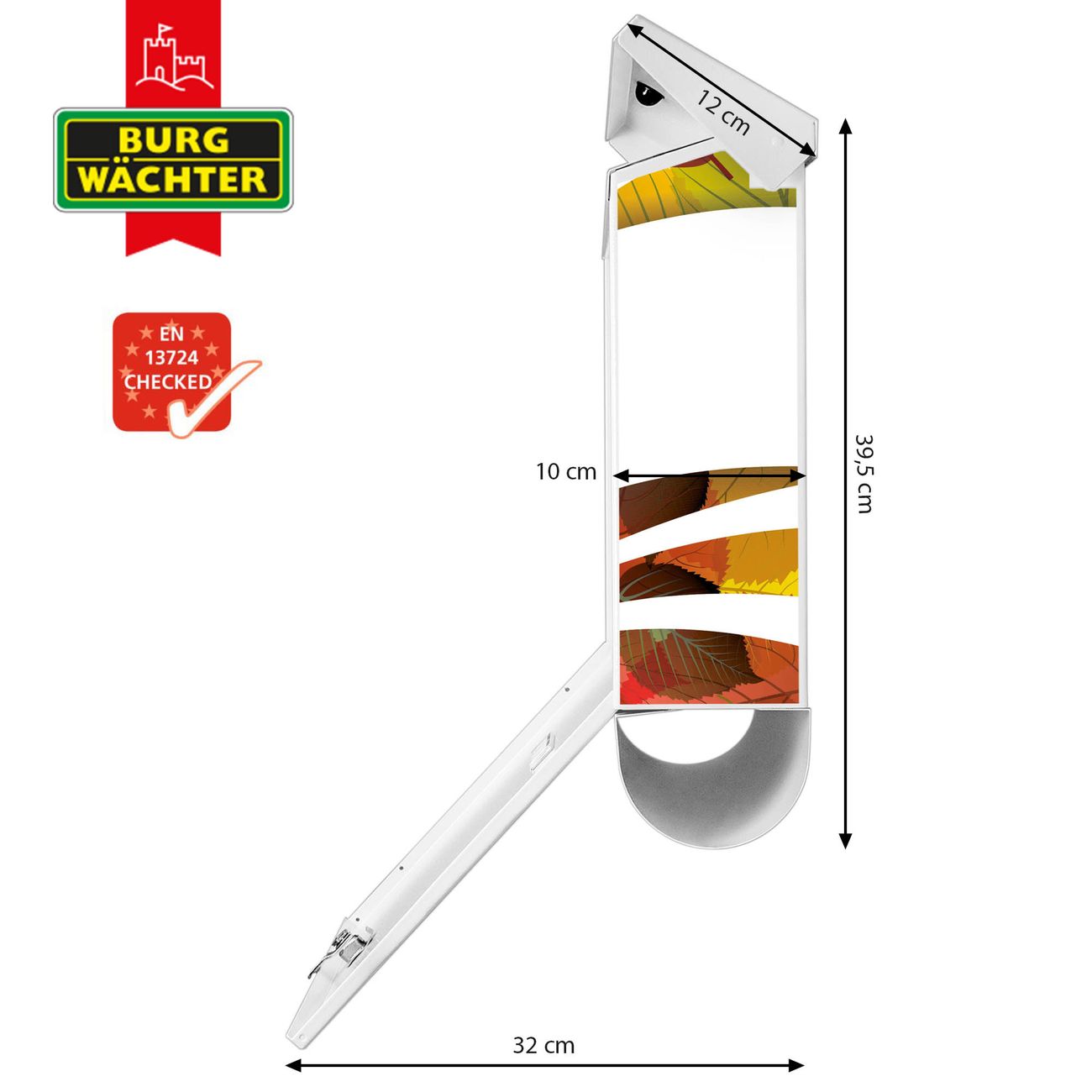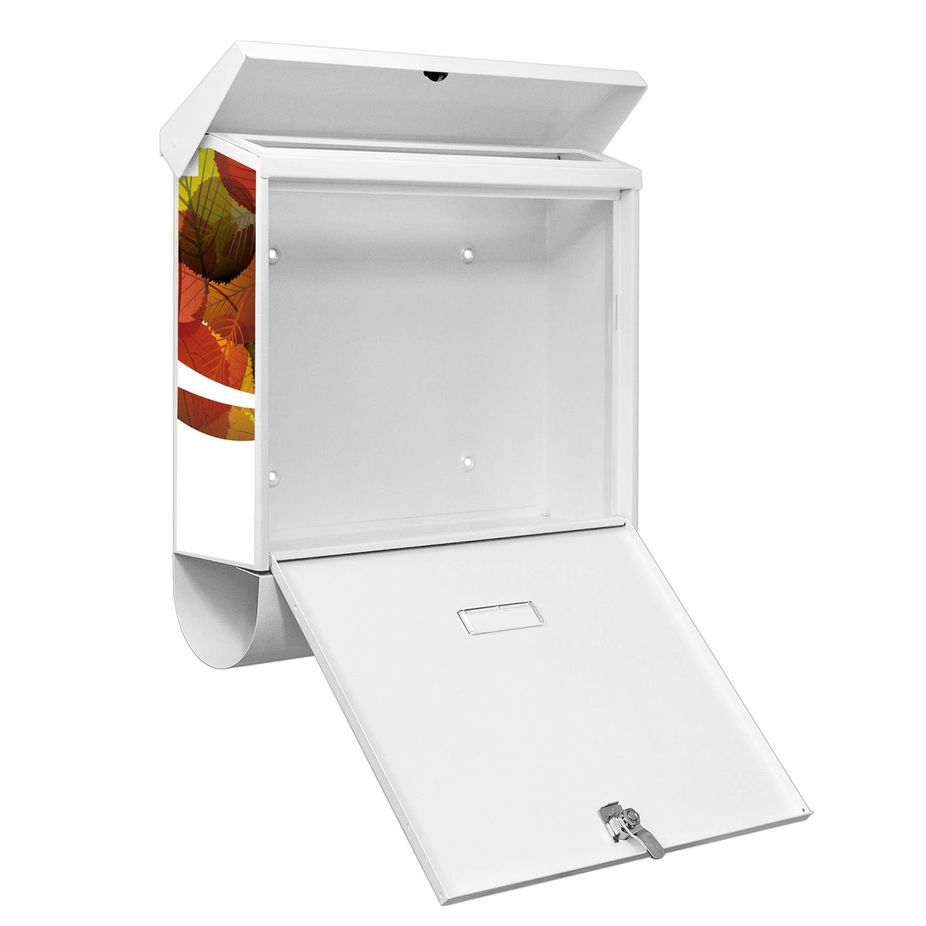 Der BURG-WÄCHTER Stahl Briefkasten mit Herbstlaub Motiv bietet Ihnen mit seinem Fassungsvermögen genügend Platz auch für große A4 Sendungen und Zeitschriften. Das integrierte Regendach schützt Ihre Post vor dem Eindringen von Regen.