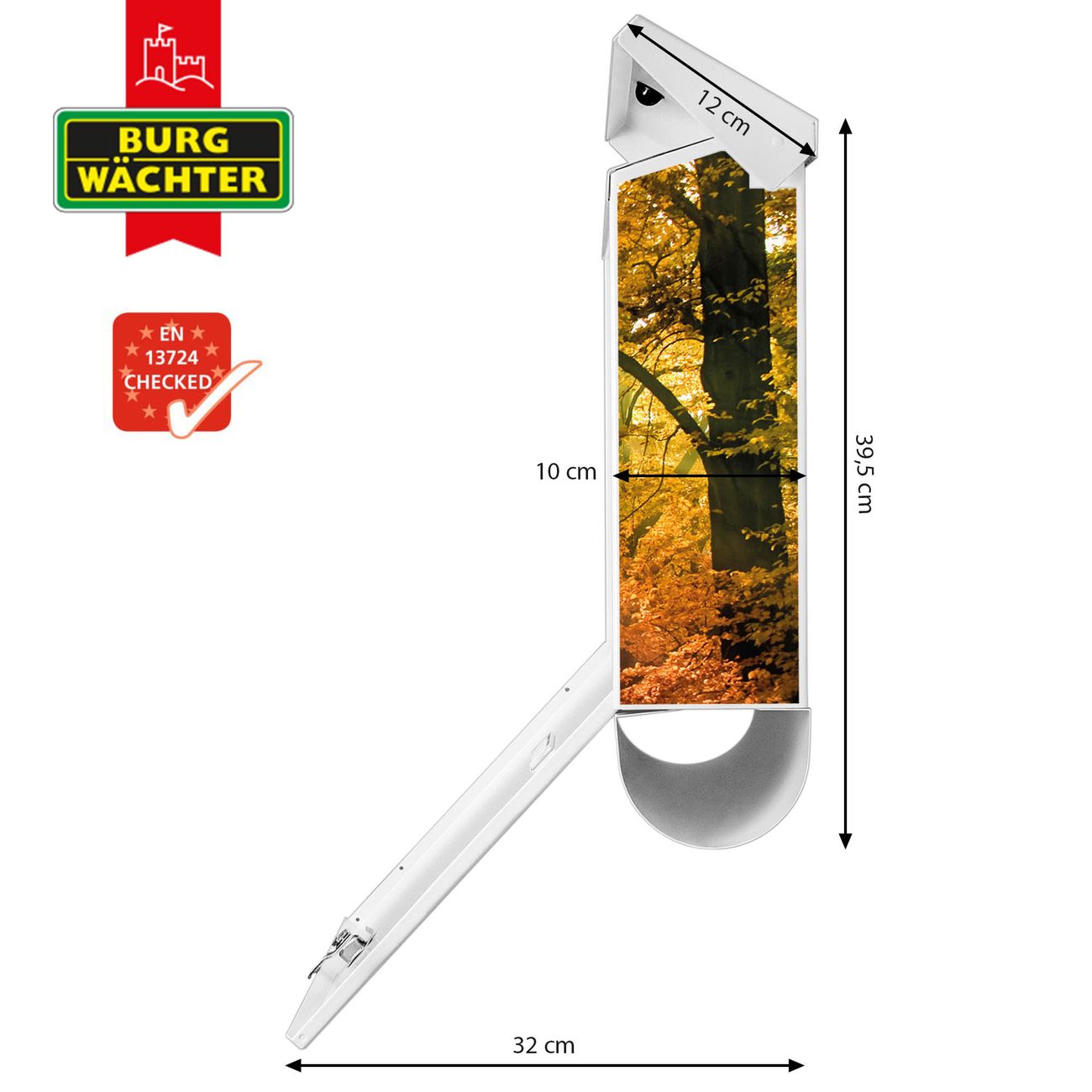 Der BURG-WÄCHTER Stahl Briefkasten mit Herbstwald Motiv bietet Ihnen mit seinem Fassungsvermögen genügend Platz auch für große A4 Sendungen und Zeitschriften. Das integrierte Regendach schützt Ihre Post vor dem Eindringen von Regen.