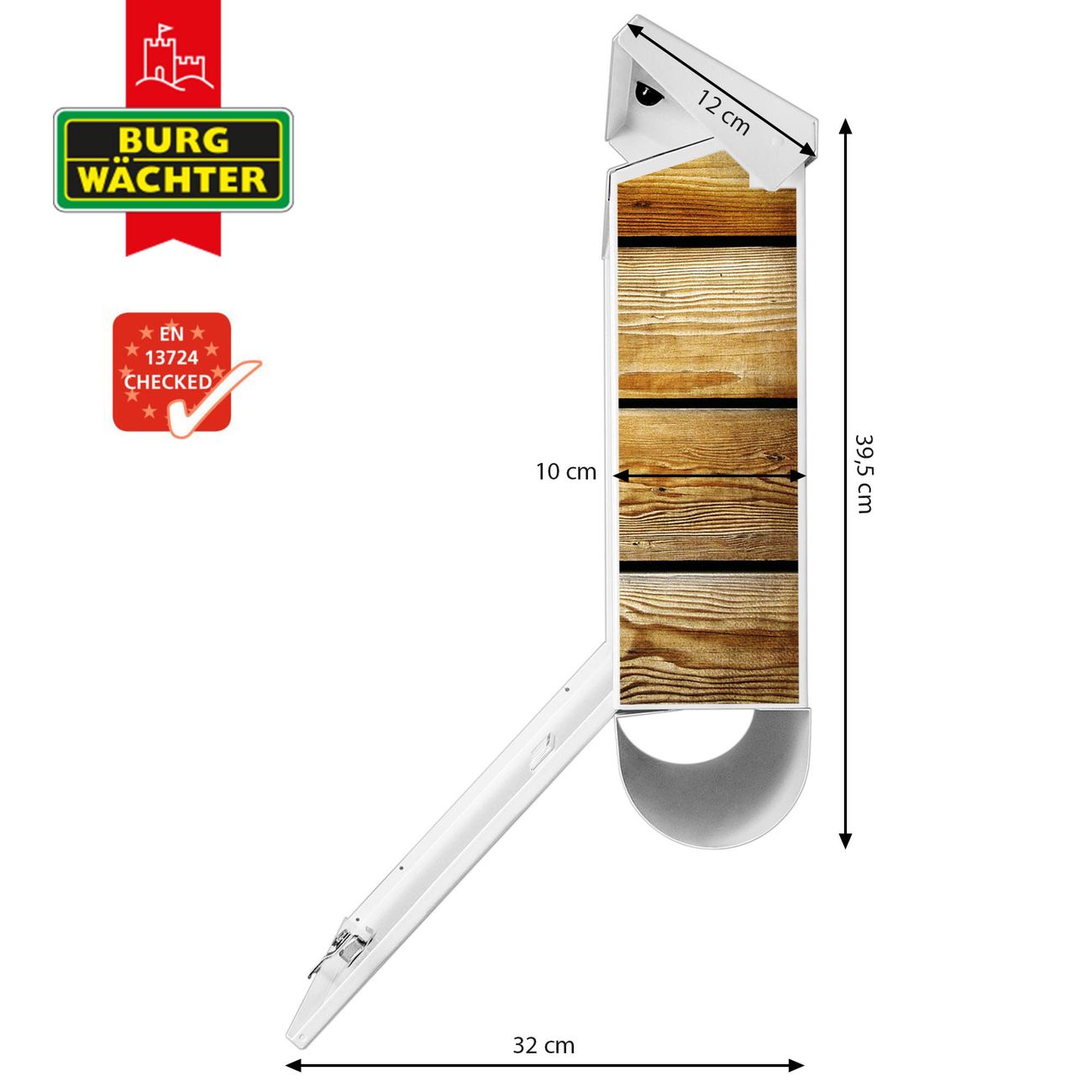 Der BURG-WÄCHTER Stahl Briefkasten mit Holzbretter Motiv bietet Ihnen mit seinem Fassungsvermögen genügend Platz auch für große A4 Sendungen und Zeitschriften. Das integrierte Regendach schützt Ihre Post vor dem Eindringen von Regen.
