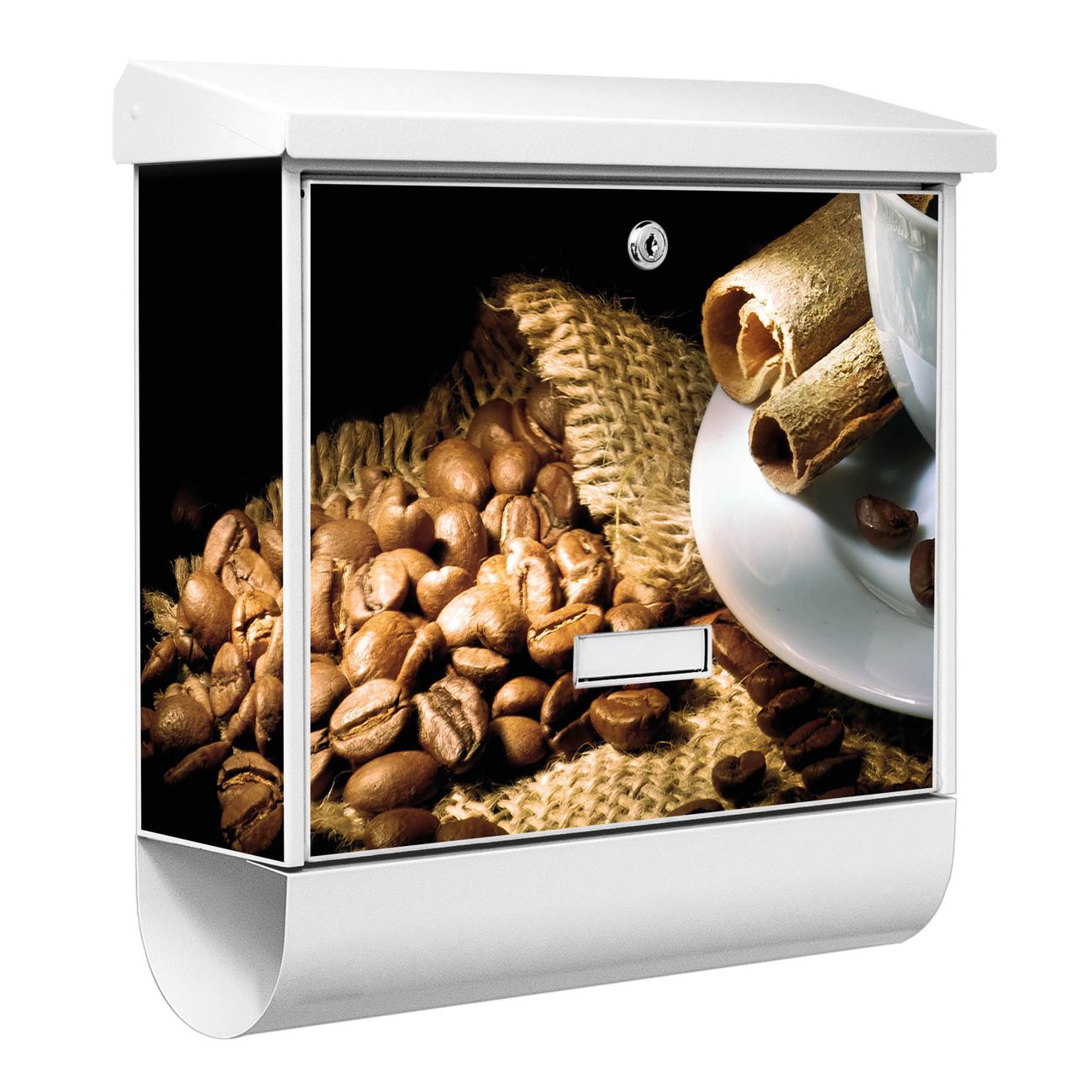 Der BURG-WÄCHTER Stahl Briefkasten mit Hot Coffee Motiv bietet Ihnen mit seinem Fassungsvermögen genügend Platz auch für große A4 Sendungen und Zeitschriften. Das integrierte Regendach schützt Ihre Post vor dem Eindringen von Regen.