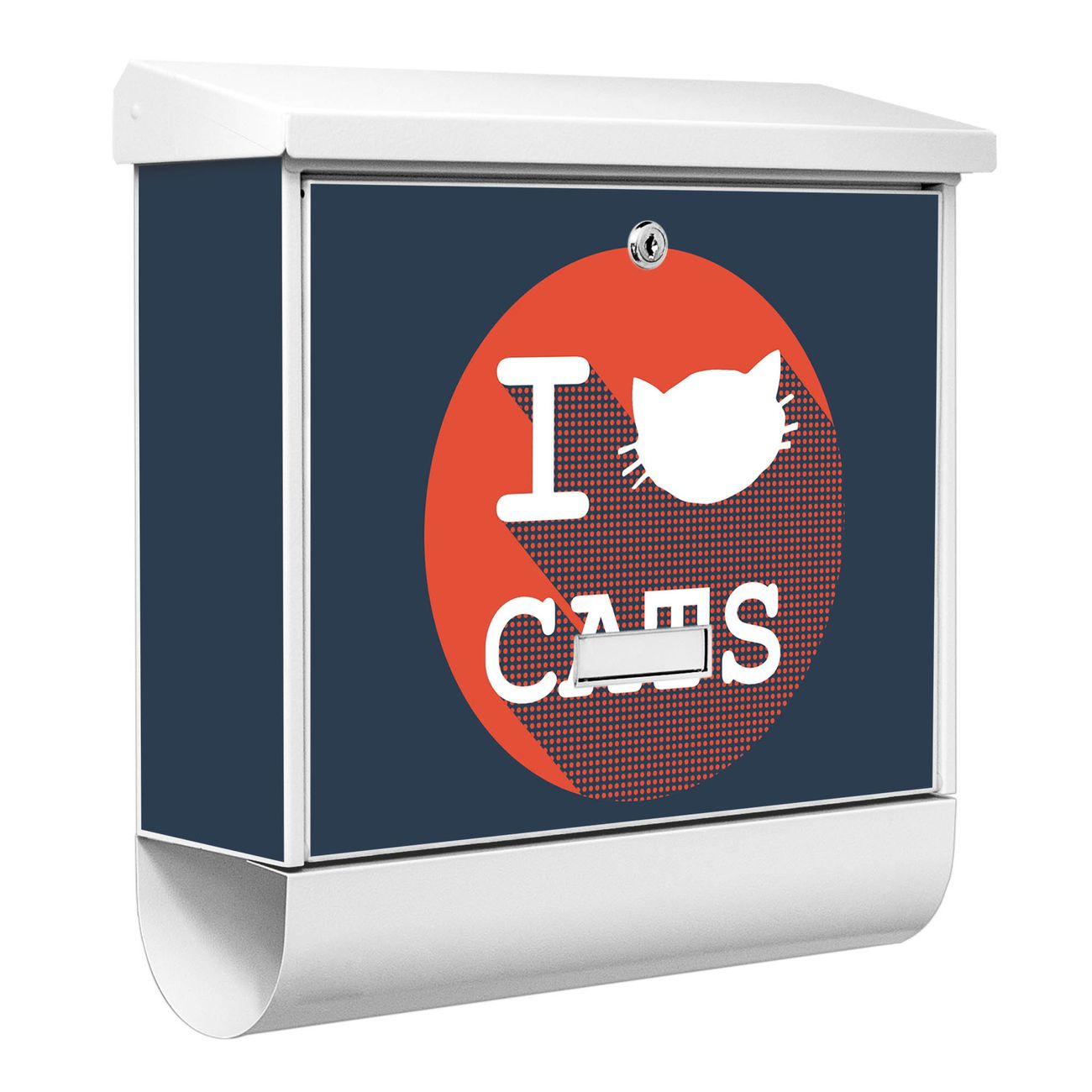 Der BURG-WÄCHTER Stahl Briefkasten mit I Love Cats Motiv bietet Ihnen mit seinem Fassungsvermögen genügend Platz auch für große A4 Sendungen und Zeitschriften. Das integrierte Regendach schützt Ihre Post vor dem Eindringen von Regen.