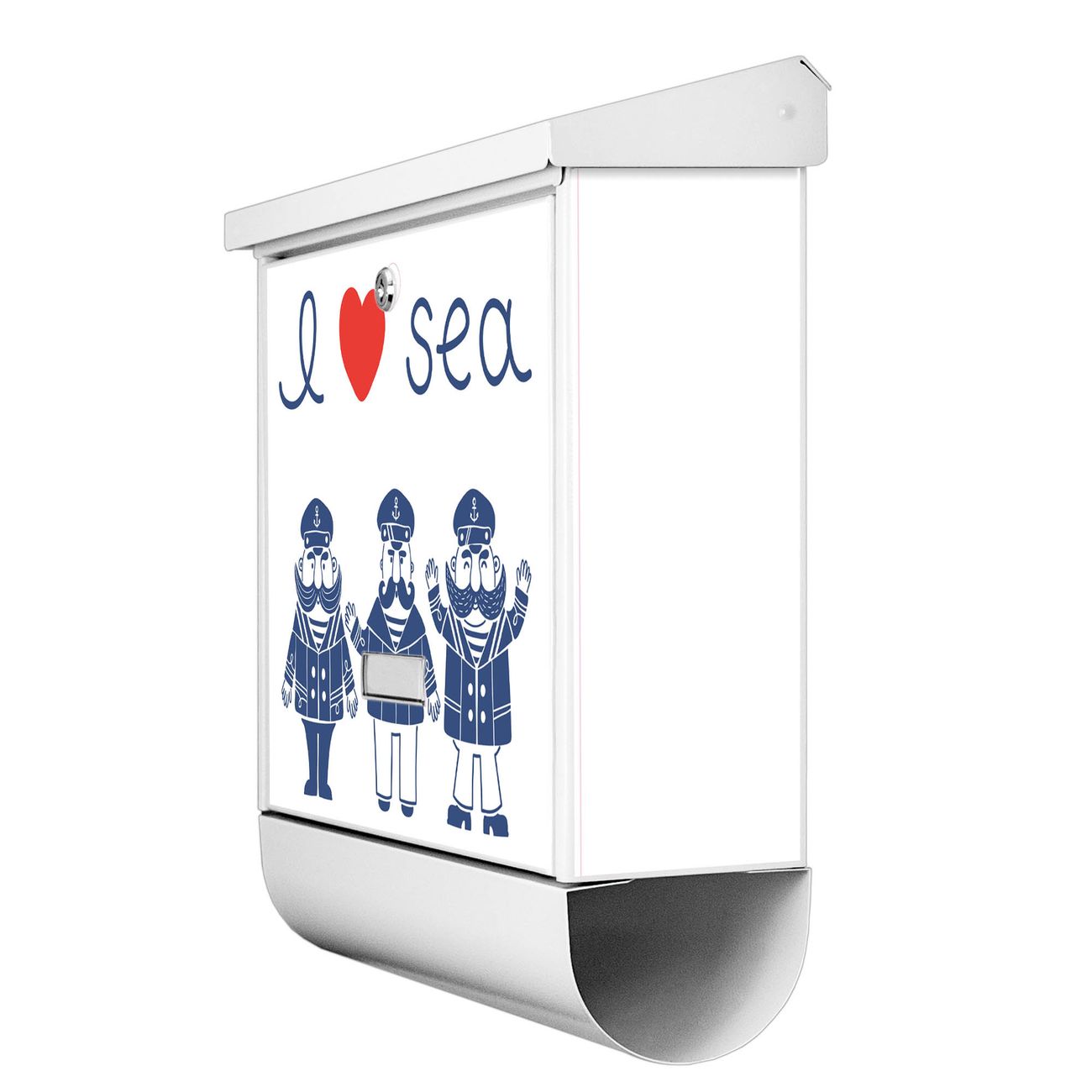 Der BURG-WÄCHTER Stahl Briefkasten mit I Love Sea Motiv bietet Ihnen mit seinem Fassungsvermögen genügend Platz auch für große A4 Sendungen und Zeitschriften. Das integrierte Regendach schützt Ihre Post vor dem Eindringen von Regen.