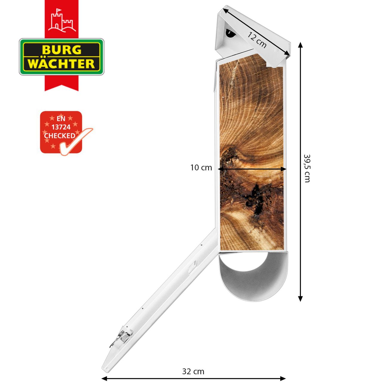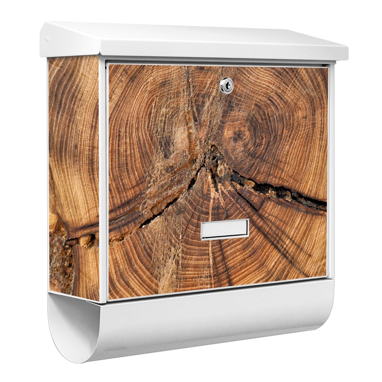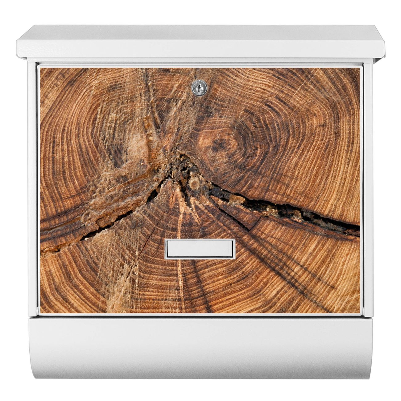 Der BURG-WÄCHTER Stahl Briefkasten mit Jahresringe Motiv bietet Ihnen mit seinem Fassungsvermögen genügend Platz auch für große A4 Sendungen und Zeitschriften. Das integrierte Regendach schützt Ihre Post vor dem Eindringen von Regen.