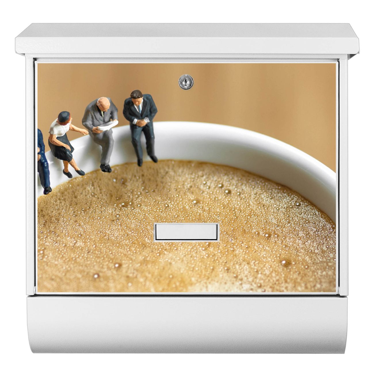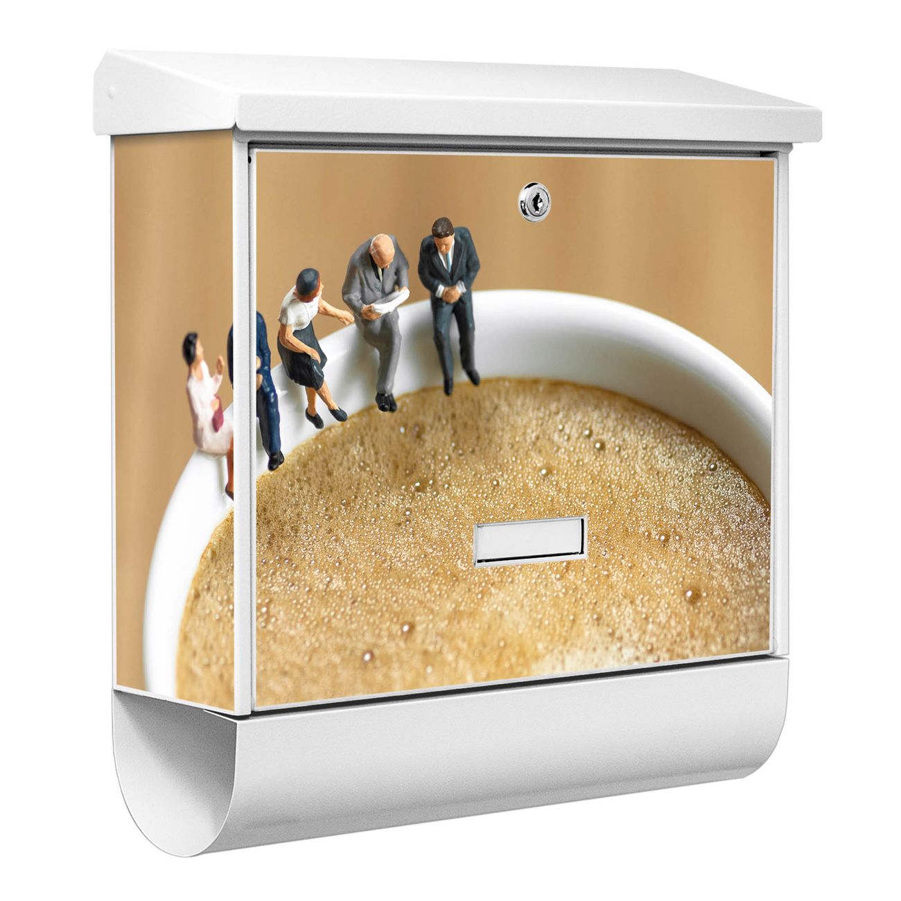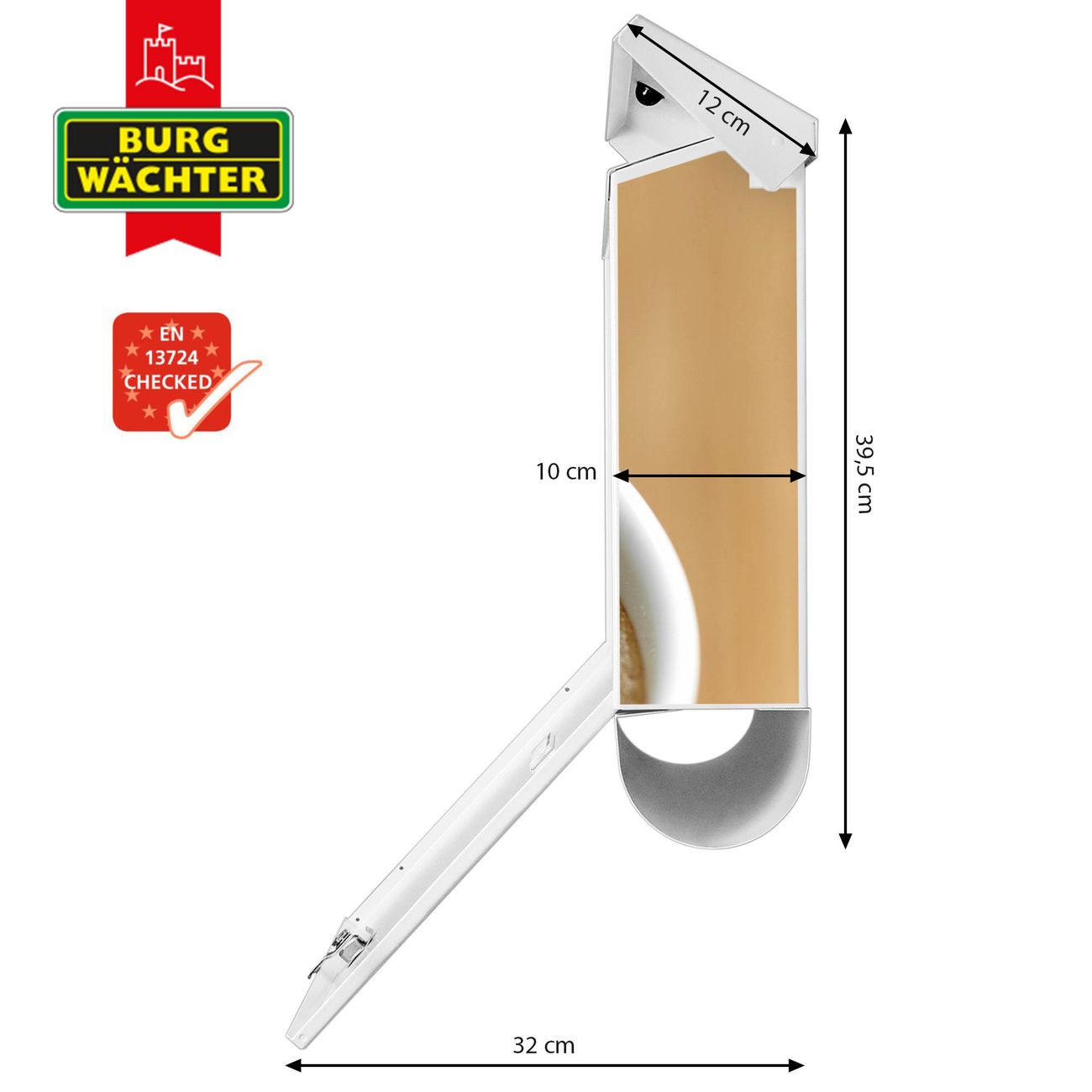 Der BURG-WÄCHTER Stahl Briefkasten mit Kaffeepause Motiv bietet Ihnen mit seinem Fassungsvermögen genügend Platz auch für große A4 Sendungen und Zeitschriften. Das integrierte Regendach schützt Ihre Post vor dem Eindringen von Regen.