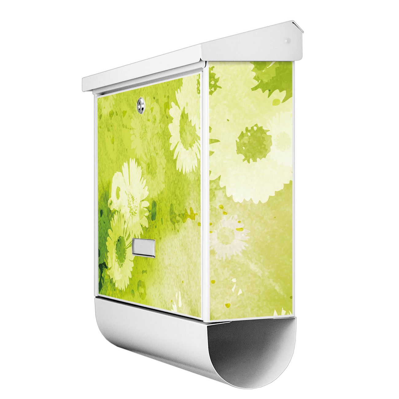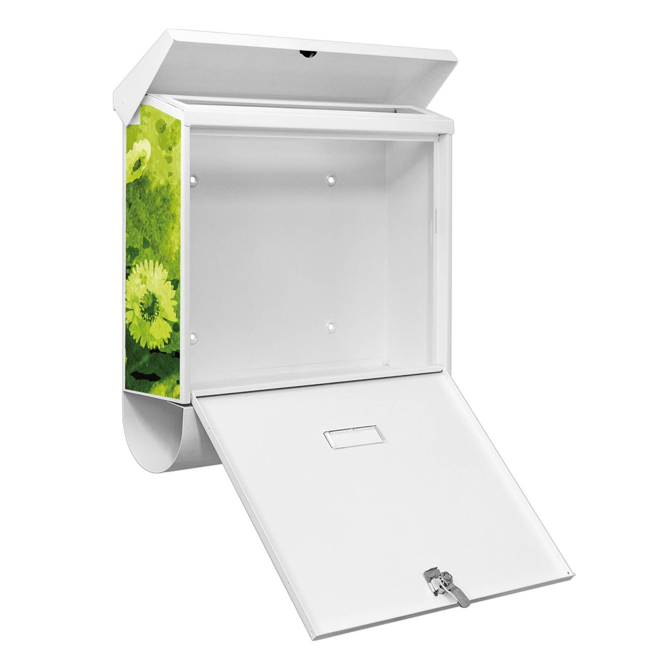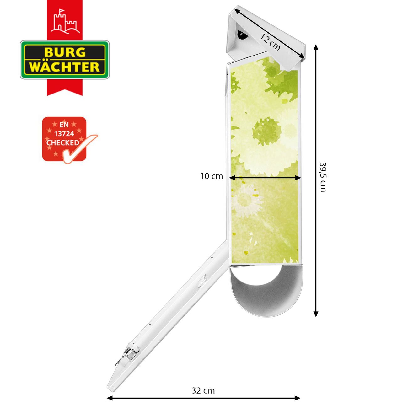 Der BURG-WÄCHTER Stahl Briefkasten mit Kamille Grün Motiv bietet Ihnen mit seinem Fassungsvermögen genügend Platz auch für große A4 Sendungen und Zeitschriften. Das integrierte Regendach schützt Ihre Post vor dem Eindringen von Regen.