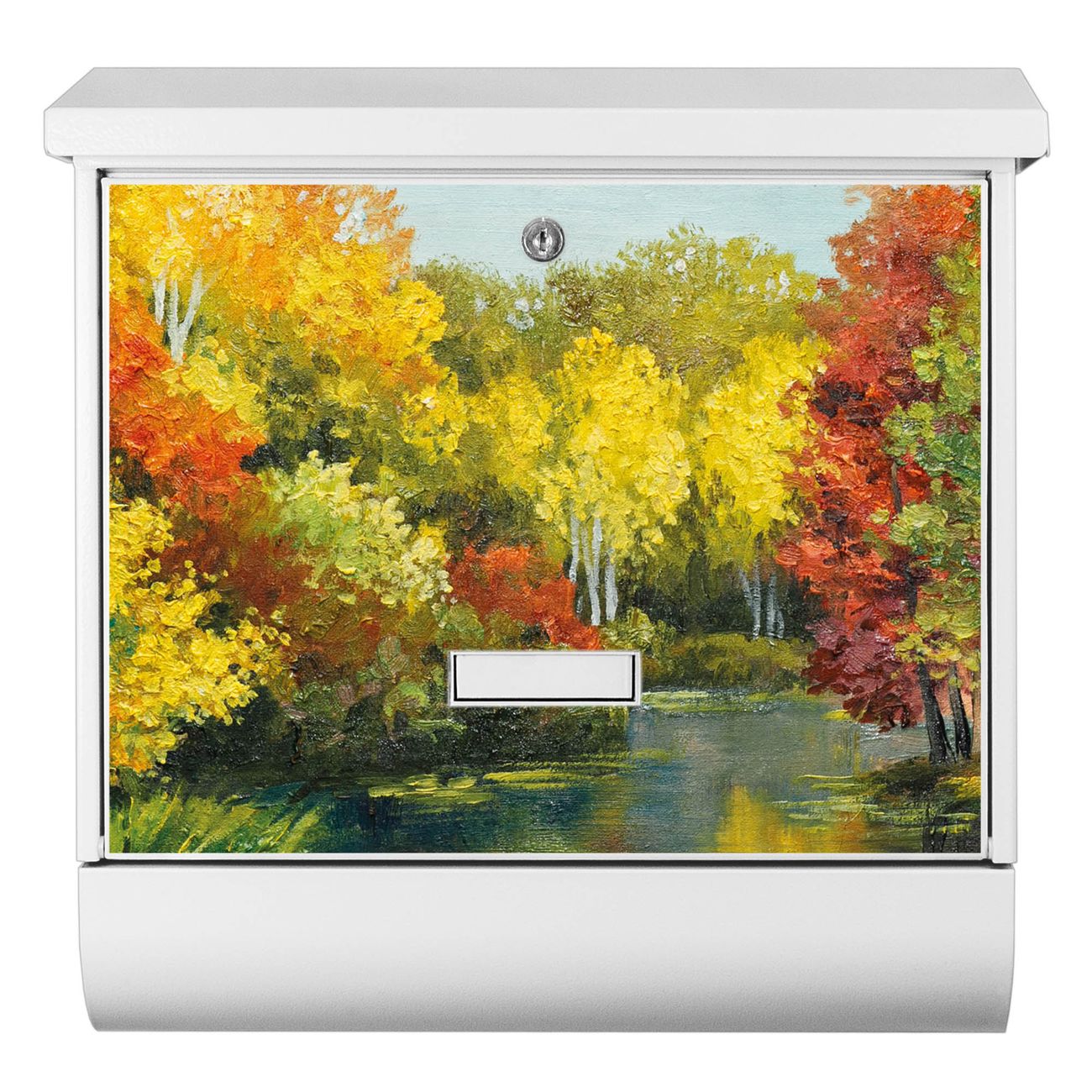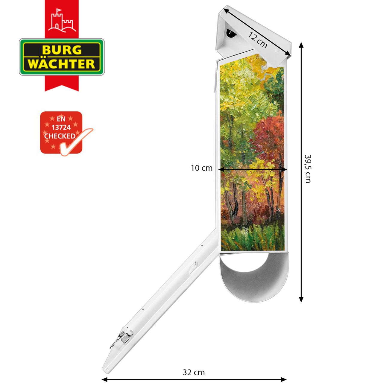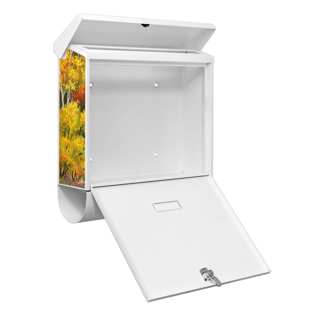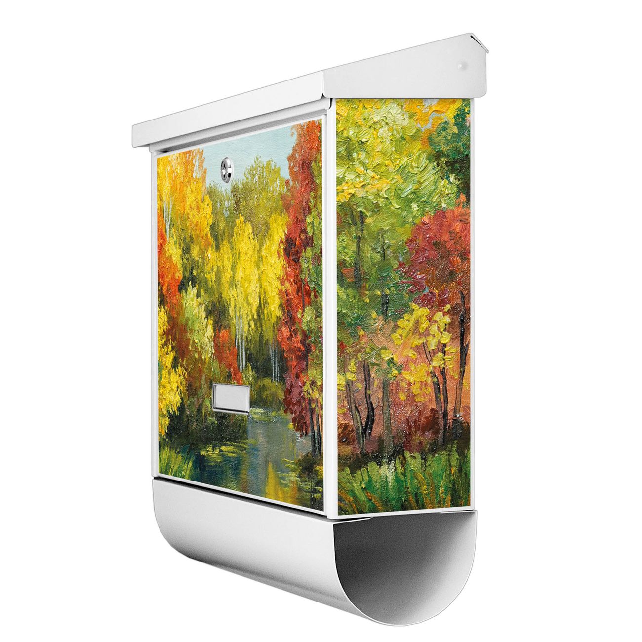 Der BURG-WÄCHTER Stahl Briefkasten mit Kanal Im Herbst Motiv bietet Ihnen mit seinem Fassungsvermögen genügend Platz auch für große A4 Sendungen und Zeitschriften. Das integrierte Regendach schützt Ihre Post vor dem Eindringen von Regen.