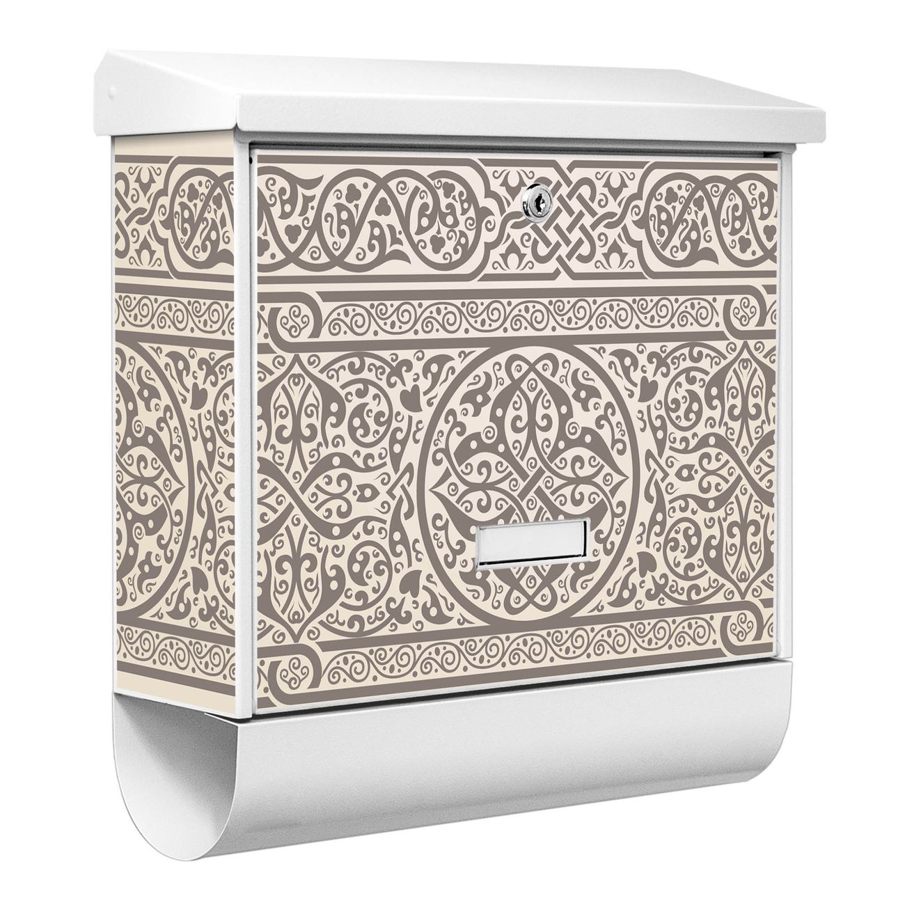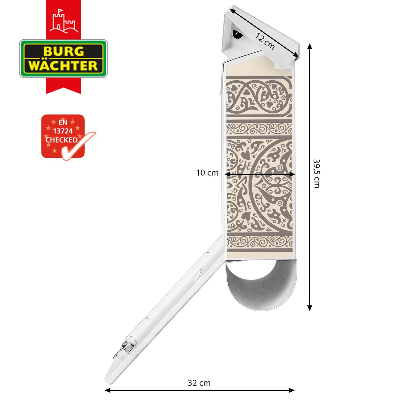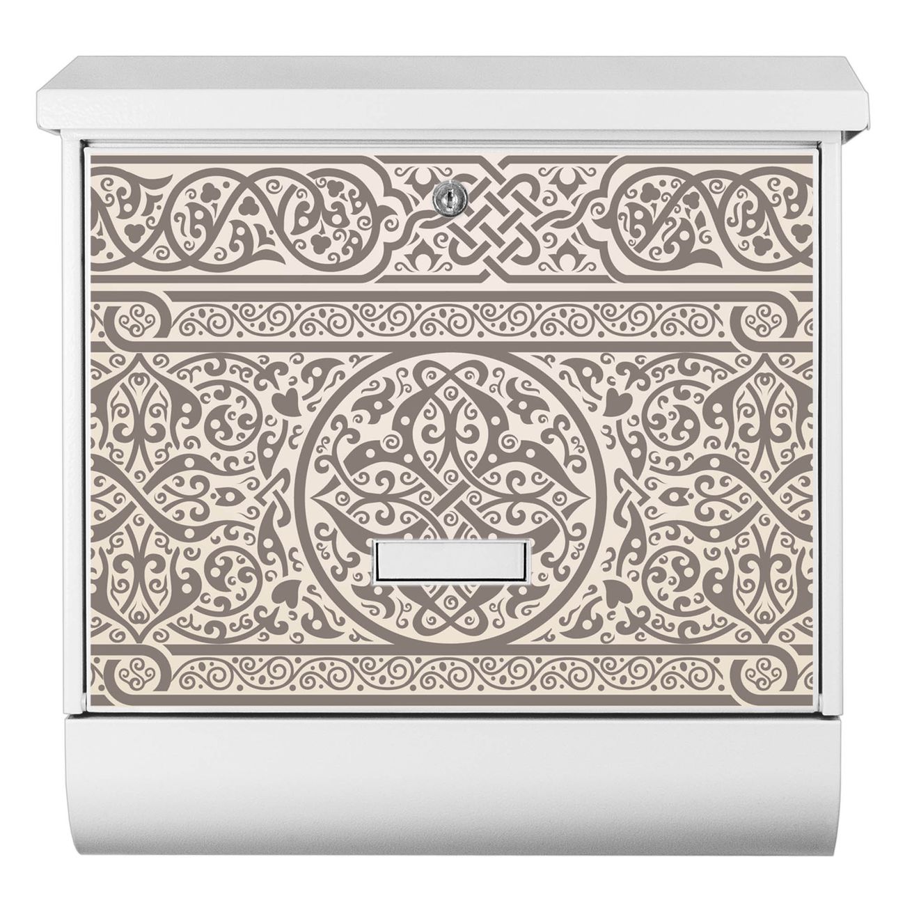 Der BURG-WÄCHTER Stahl Briefkasten mit Keltischer Knoten Motiv bietet Ihnen mit seinem Fassungsvermögen genügend Platz auch für große A4 Sendungen und Zeitschriften. Das integrierte Regendach schützt Ihre Post vor dem Eindringen von Regen.