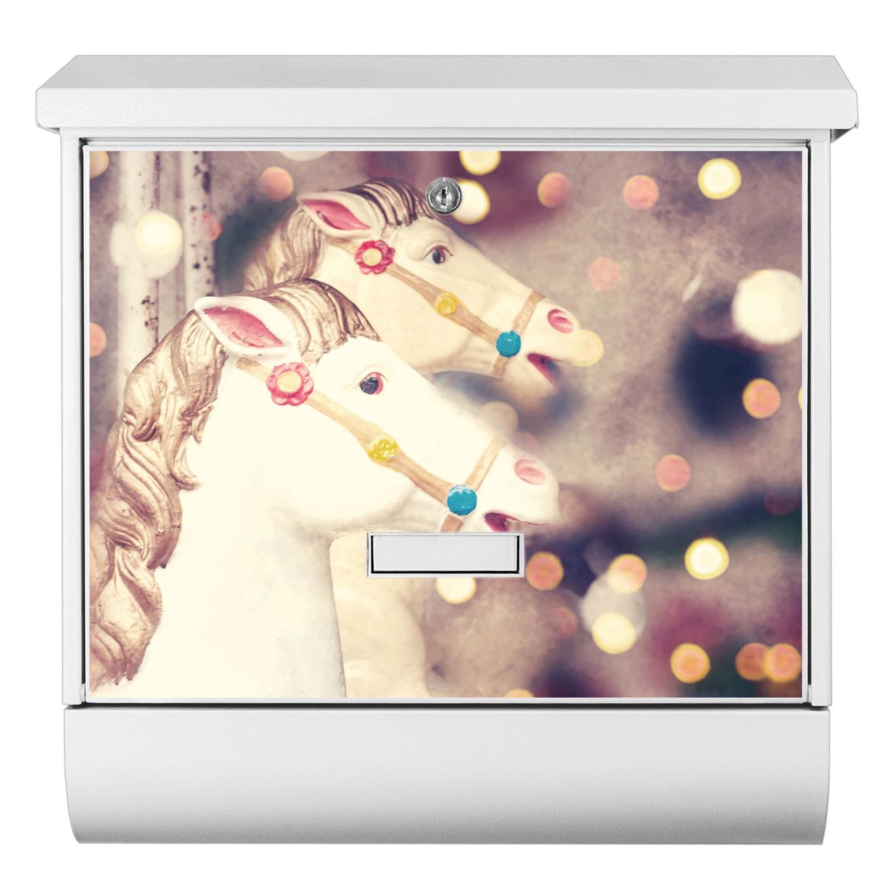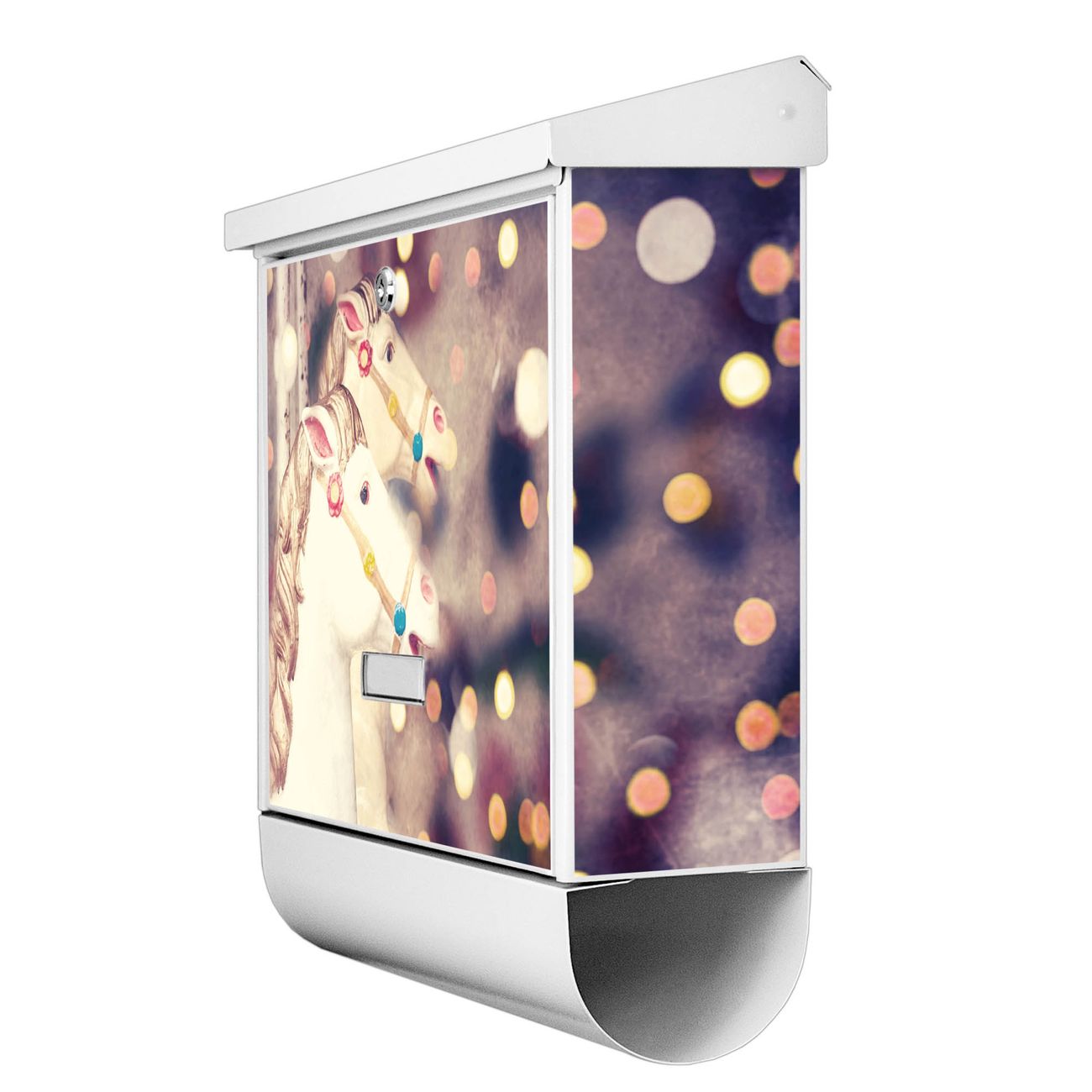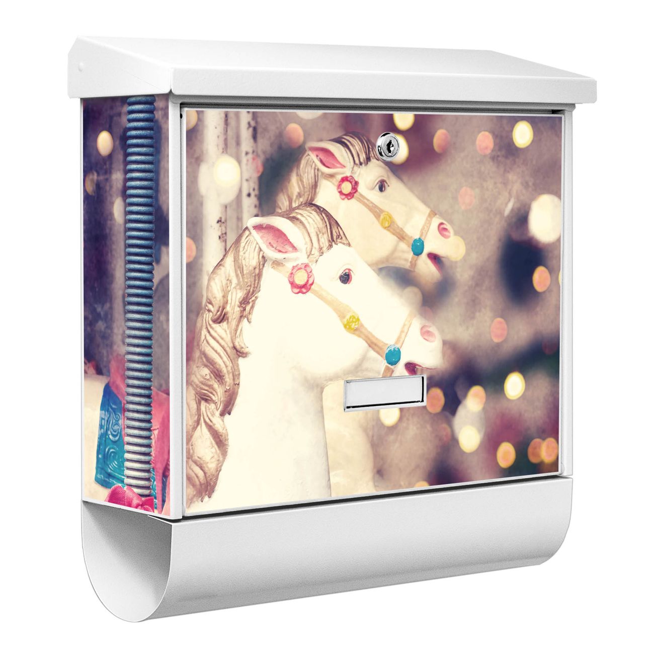 Der BURG-WÄCHTER Stahl Briefkasten mit Kinderkarussell Motiv bietet Ihnen mit seinem Fassungsvermögen genügend Platz auch für große A4 Sendungen und Zeitschriften. Das integrierte Regendach schützt Ihre Post vor dem Eindringen von Regen.