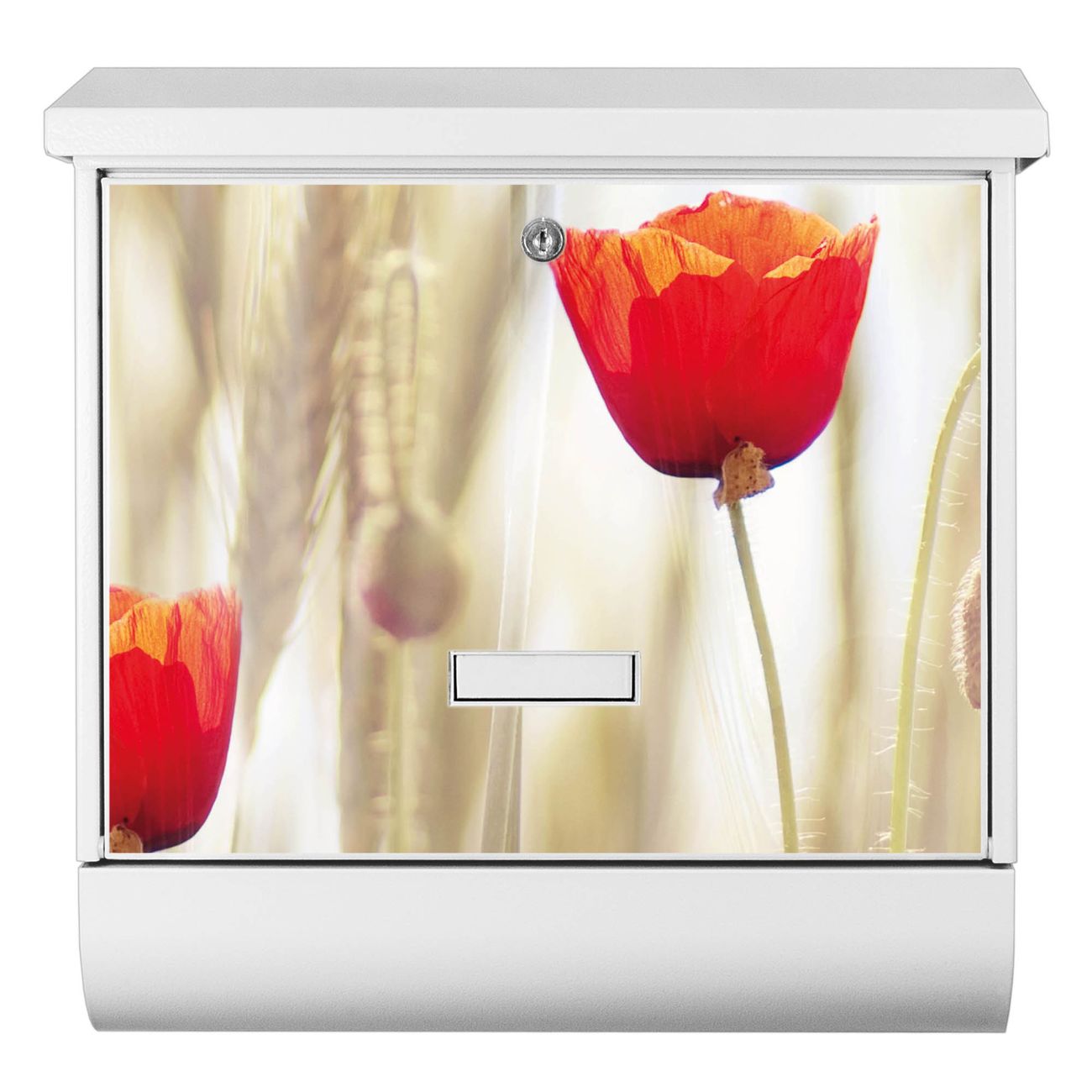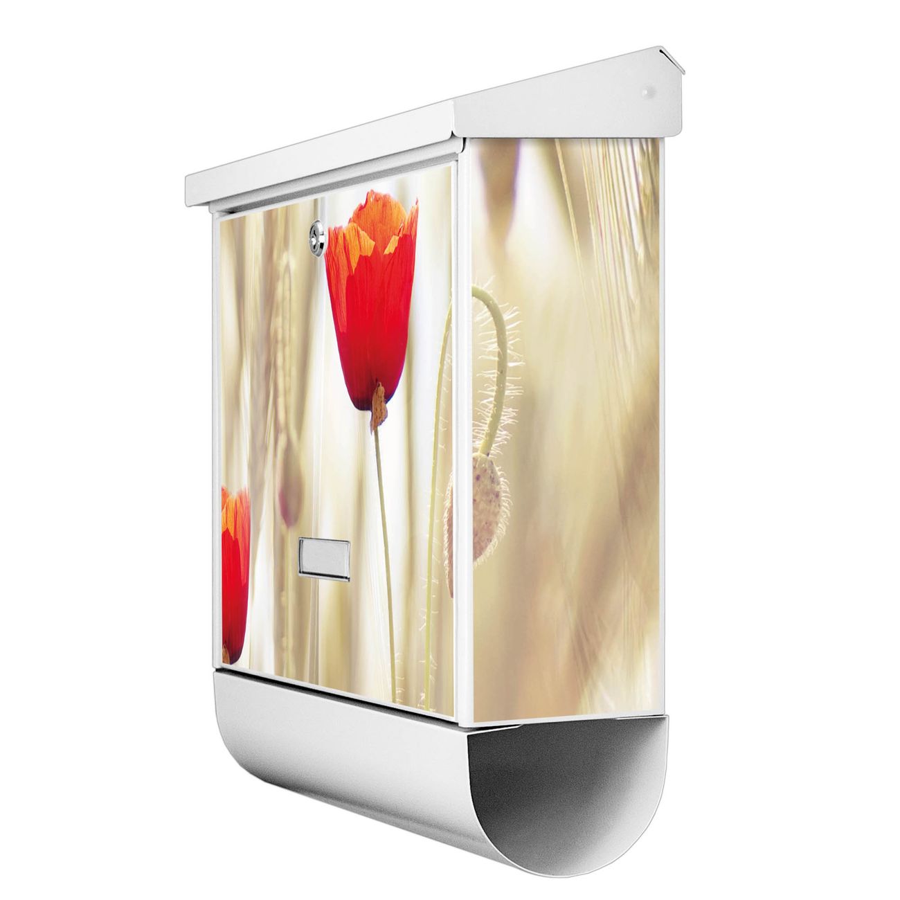 Der BURG-WÄCHTER Stahl Briefkasten mit Klatschmohn Motiv bietet Ihnen mit seinem Fassungsvermögen genügend Platz auch für große A4 Sendungen und Zeitschriften. Das integrierte Regendach schützt Ihre Post vor dem Eindringen von Regen.