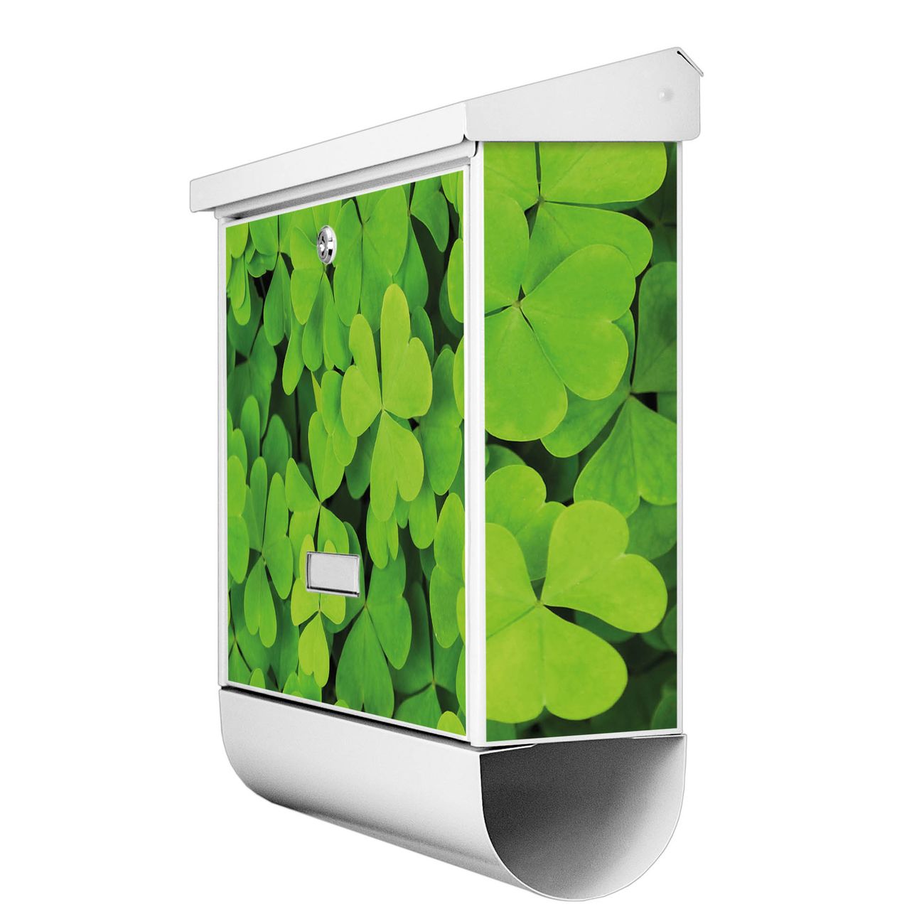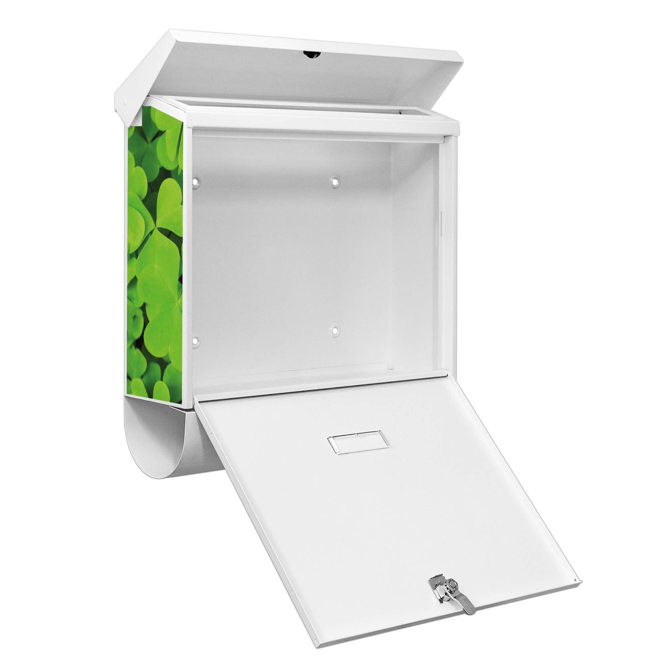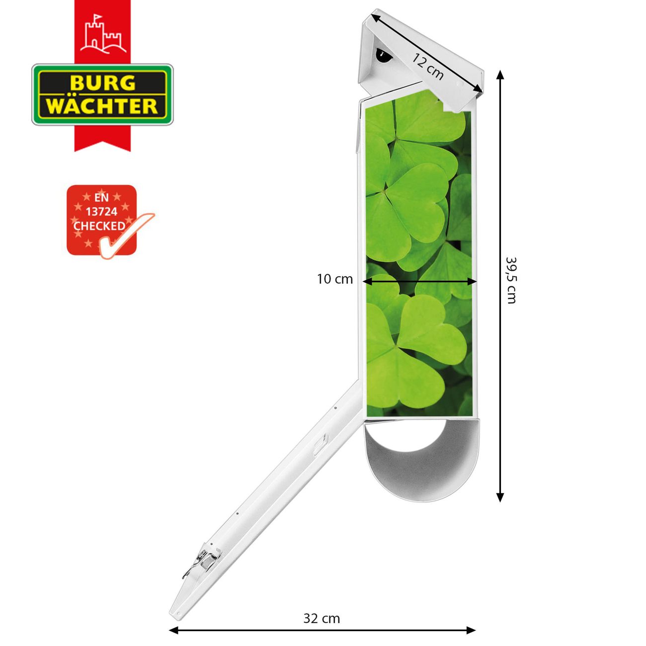 Der BURG-WÄCHTER Stahl Briefkasten mit Klee Motiv bietet Ihnen mit seinem Fassungsvermögen genügend Platz auch für große A4 Sendungen und Zeitschriften. Das integrierte Regendach schützt Ihre Post vor dem Eindringen von Regen.