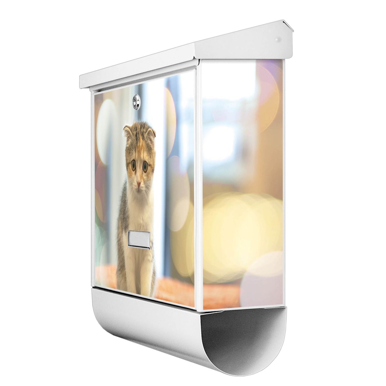 Der BURG-WÄCHTER Stahl Briefkasten mit Kleine Katze Motiv bietet Ihnen mit seinem Fassungsvermögen genügend Platz auch für große A4 Sendungen und Zeitschriften. Das integrierte Regendach schützt Ihre Post vor dem Eindringen von Regen.