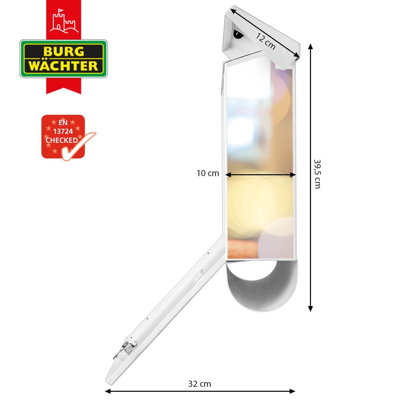 - Material: weiß pulverbeschichtetes Stahlblech