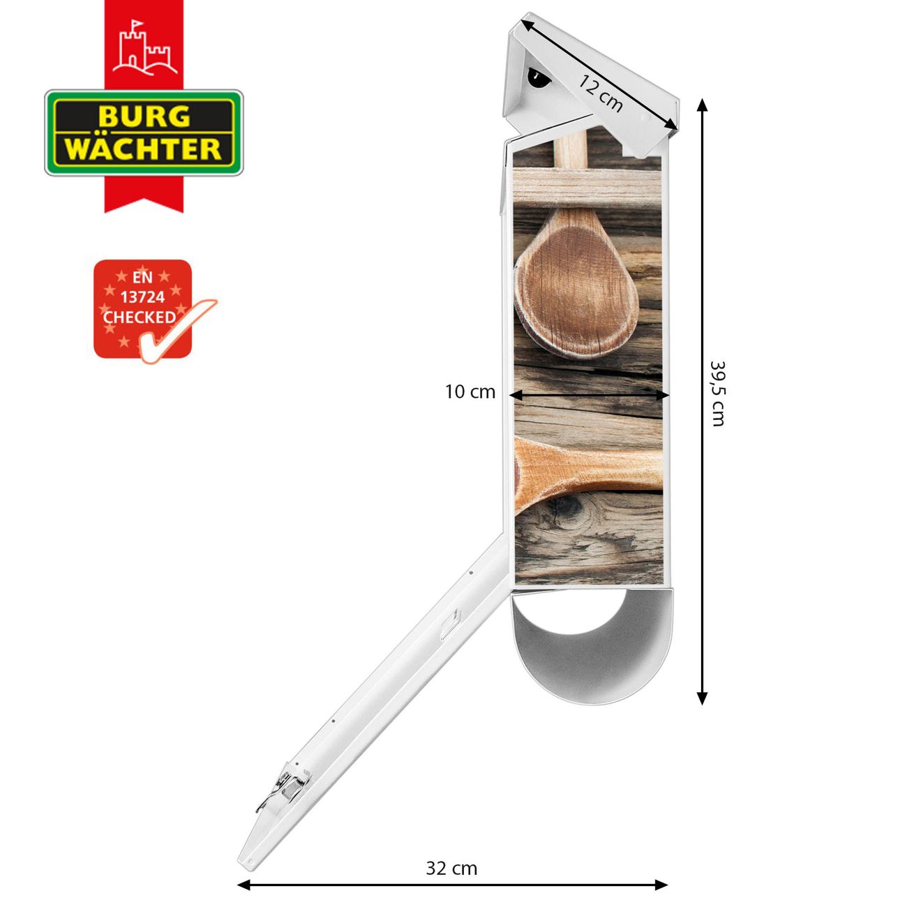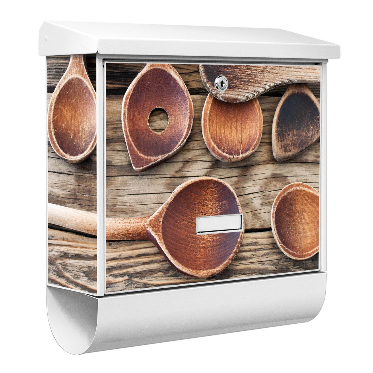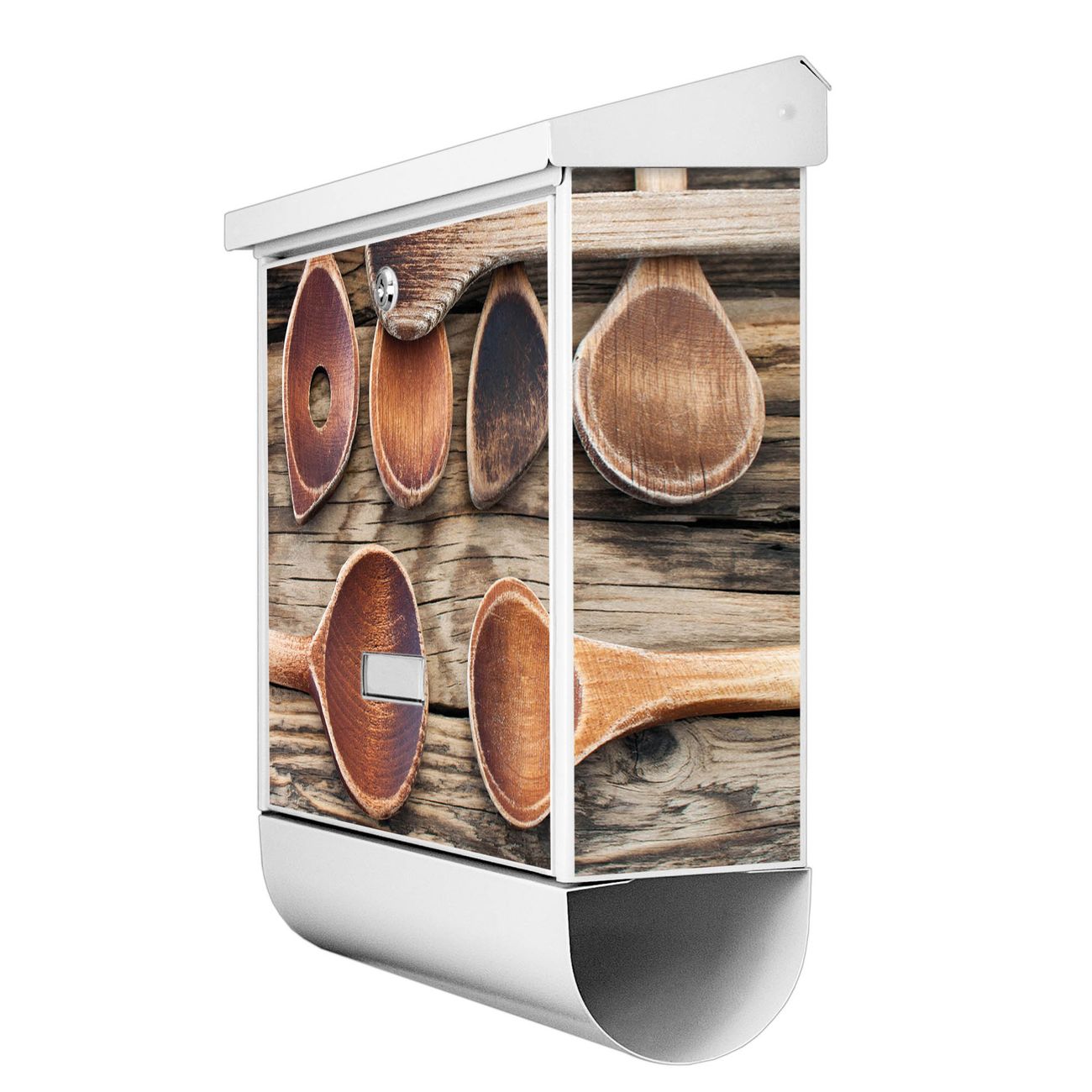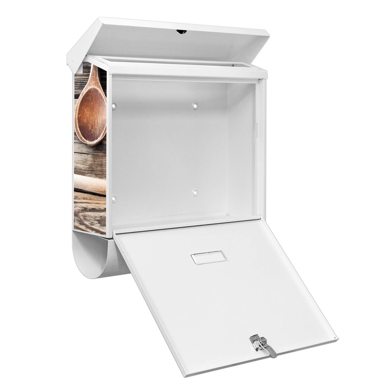 Der BURG-WÄCHTER Stahl Briefkasten mit Kochlöffel Motiv bietet Ihnen mit seinem Fassungsvermögen genügend Platz auch für große A4 Sendungen und Zeitschriften. Das integrierte Regendach schützt Ihre Post vor dem Eindringen von Regen.