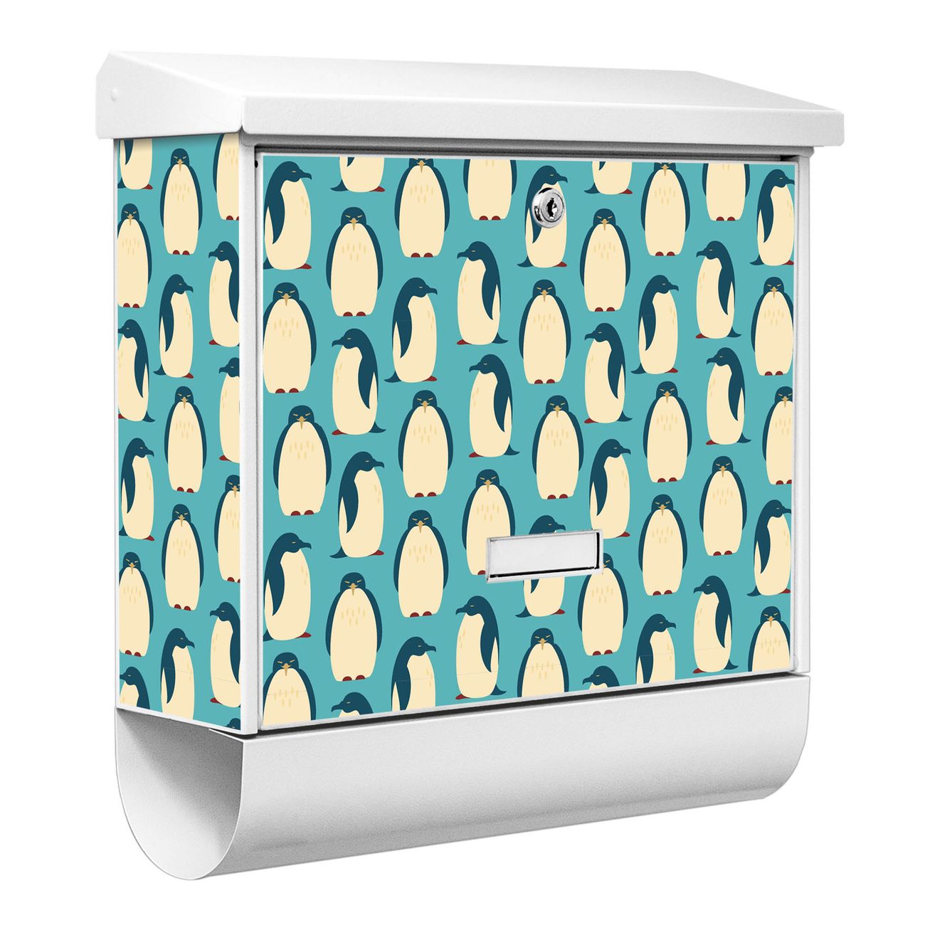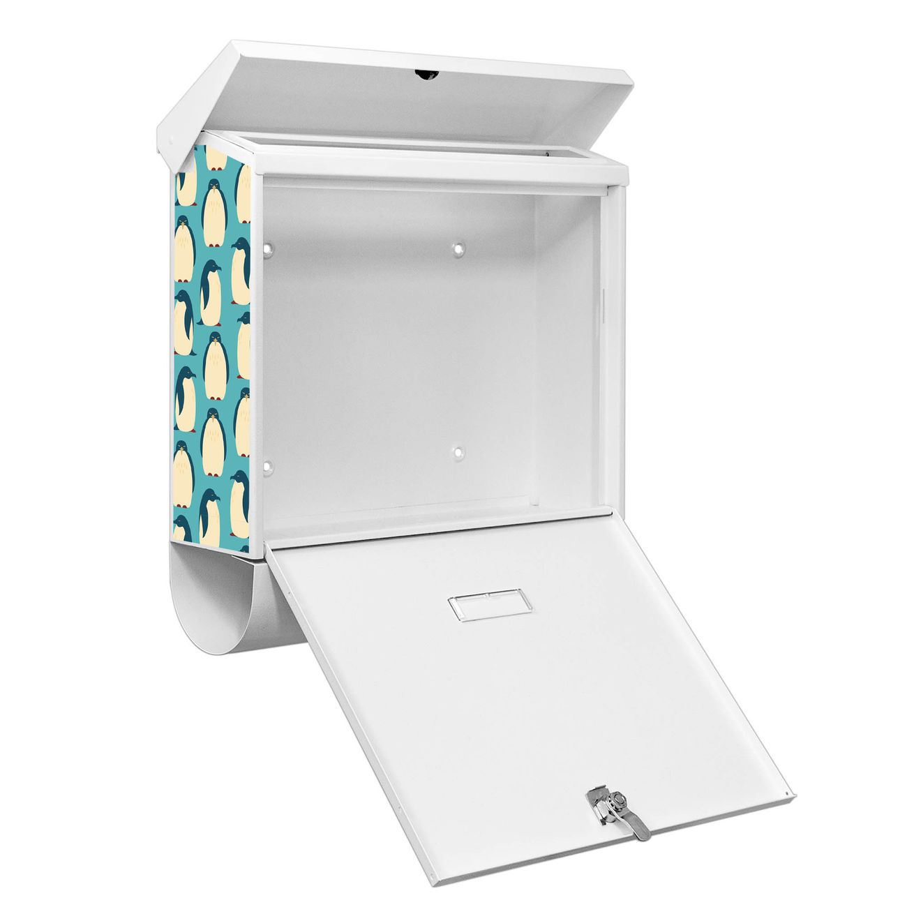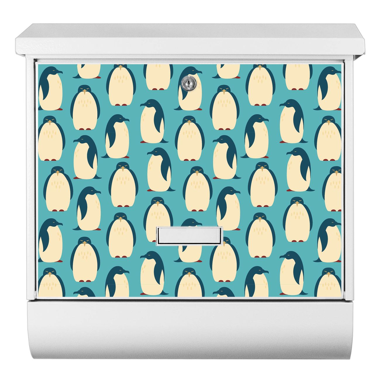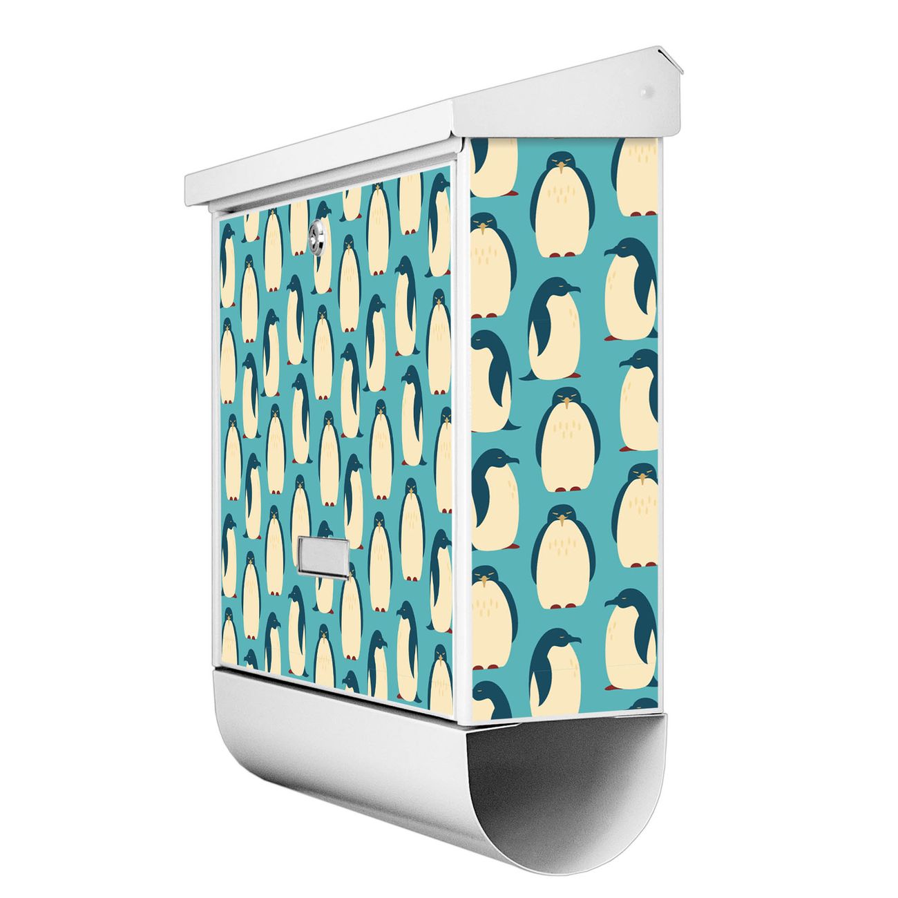 Der BURG-WÄCHTER Stahl Briefkasten mit Königspinguine Motiv bietet Ihnen mit seinem Fassungsvermögen genügend Platz auch für große A4 Sendungen und Zeitschriften. Das integrierte Regendach schützt Ihre Post vor dem Eindringen von Regen.
