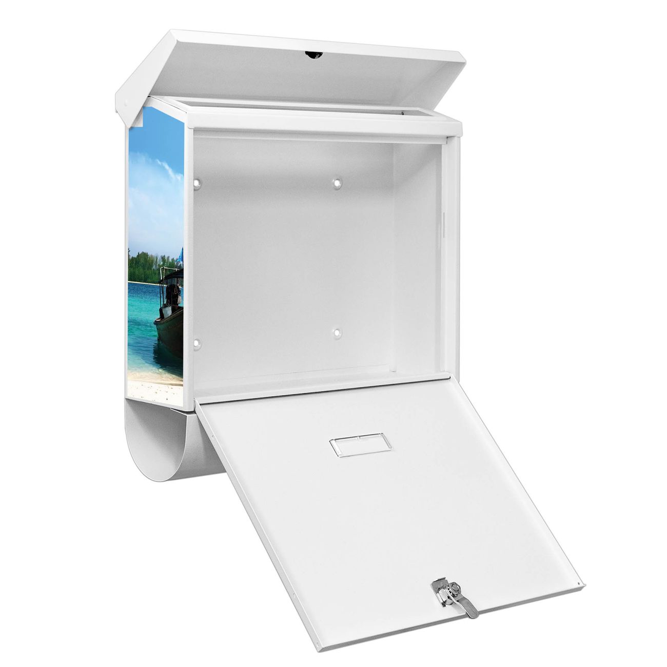 Der Briefkasten besteht aus Stahl, einem hochwertigen Material das äußerst unempfindlich gegenüber Witterungseinflüssen ist. Das Motiv besteht aus einer wetter- und UV-festen Folie, die Ihren Briefkasten zusätzlich vor Kratzern schützt. Der Postkasten ist 42,5cm hoch, 38cm breit und 11,5cm tief. Der Briefeinwurf ist 33,2cm x 3,1cm, Format DIN C4. Der Briefkasten wird mit Montagematerial und zwei Schlüsseln geliefert.