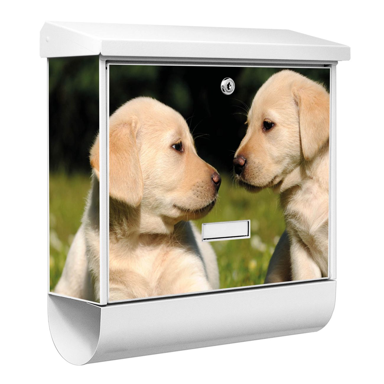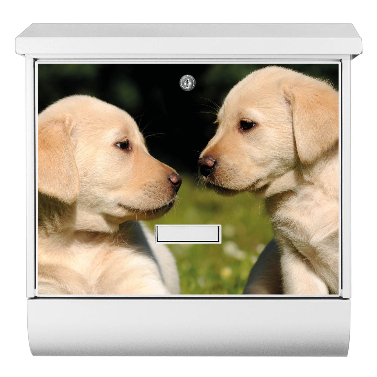 Der BURG-WÄCHTER Stahl Briefkasten mit Labrador Motiv bietet Ihnen mit seinem Fassungsvermögen genügend Platz auch für große A4 Sendungen und Zeitschriften. Das integrierte Regendach schützt Ihre Post vor dem Eindringen von Regen.