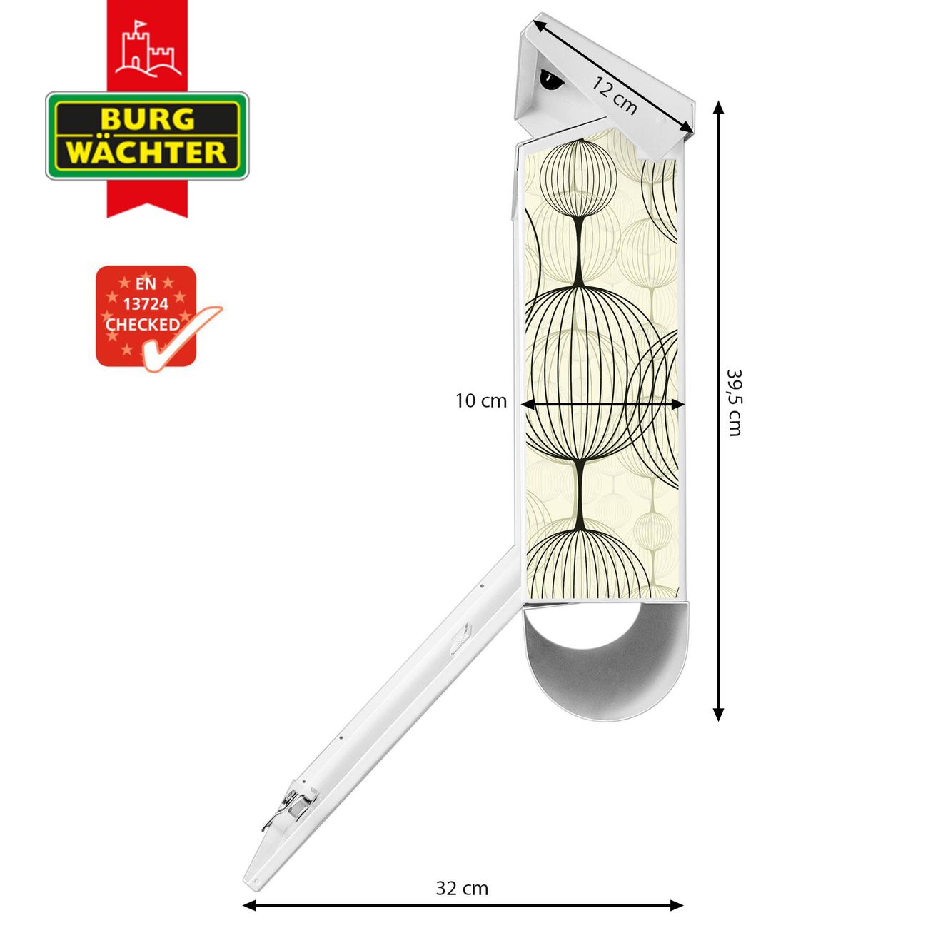 Der BURG-WÄCHTER Stahl Briefkasten mit Lampions Motiv bietet Ihnen mit seinem Fassungsvermögen genügend Platz auch für große A4 Sendungen und Zeitschriften. Das integrierte Regendach schützt Ihre Post vor dem Eindringen von Regen.