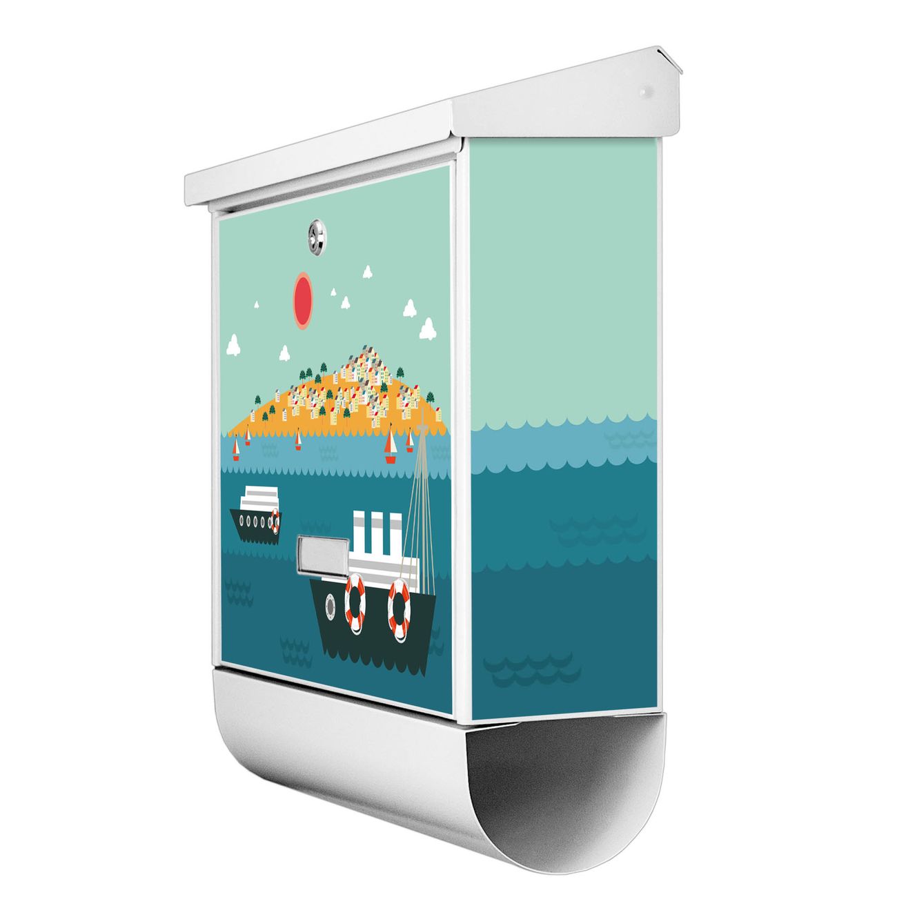 Sie können diesen Briefkasten sowohl als Wandbriefkasten montieren oder mit dem passenden Ständer als Standbriefkasten einbetonieren. Die gestaltete Motivfolie ist absolut wetterfest, UV-beständig und ein zusätzliches Schutzlaminat bewahrt Ihren Briefkasten vor unnötigen Kratzern. Das Namensschild kann frei beschriftet werden.