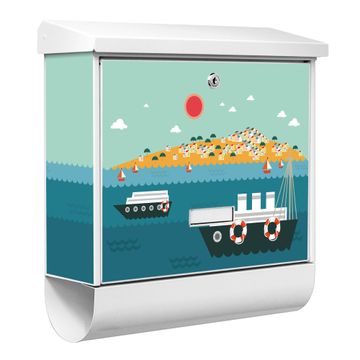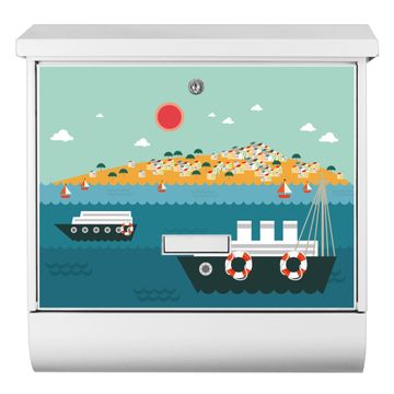 Der BURG-WÄCHTER Stahl Briefkasten mit Land in Sicht Motiv bietet Ihnen mit seinem Fassungsvermögen genügend Platz auch für große A4 Sendungen und Zeitschriften. Das integrierte Regendach schützt Ihre Post vor dem Eindringen von Regen.