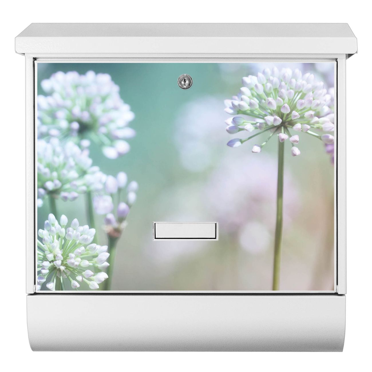 Der BURG-WÄCHTER Stahl Briefkasten mit Lauchblüte Motiv bietet Ihnen mit seinem Fassungsvermögen genügend Platz auch für große A4 Sendungen und Zeitschriften. Das integrierte Regendach schützt Ihre Post vor dem Eindringen von Regen.