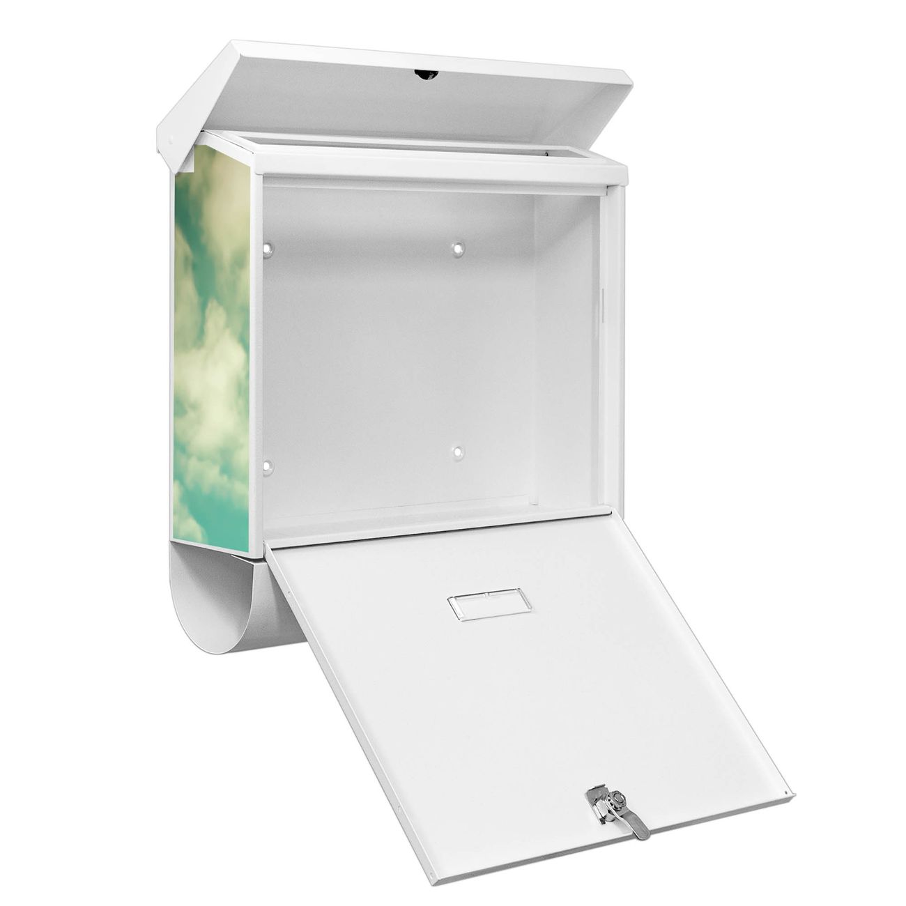 Der BURG-WÄCHTER Stahl Briefkasten mit Leicht Bewölkt Motiv bietet Ihnen mit seinem Fassungsvermögen genügend Platz auch für große A4 Sendungen und Zeitschriften. Das integrierte Regendach schützt Ihre Post vor dem Eindringen von Regen.