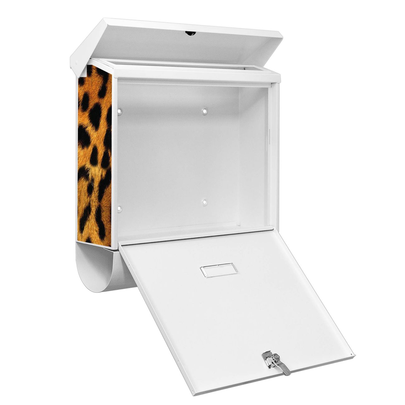 Der BURG-WÄCHTER Stahl Briefkasten mit Leopard Motiv bietet Ihnen mit seinem Fassungsvermögen genügend Platz auch für große A4 Sendungen und Zeitschriften. Das integrierte Regendach schützt Ihre Post vor dem Eindringen von Regen.