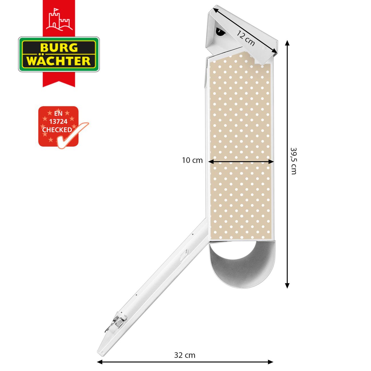 Der BURG-WÄCHTER Stahl Briefkasten mit Liebesbrief Motiv bietet Ihnen mit seinem Fassungsvermögen genügend Platz auch für große A4 Sendungen und Zeitschriften. Das integrierte Regendach schützt Ihre Post vor dem Eindringen von Regen.