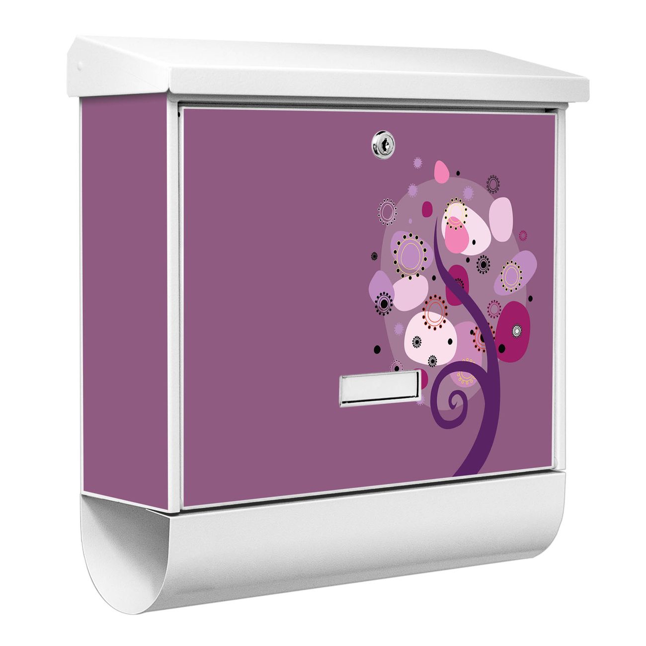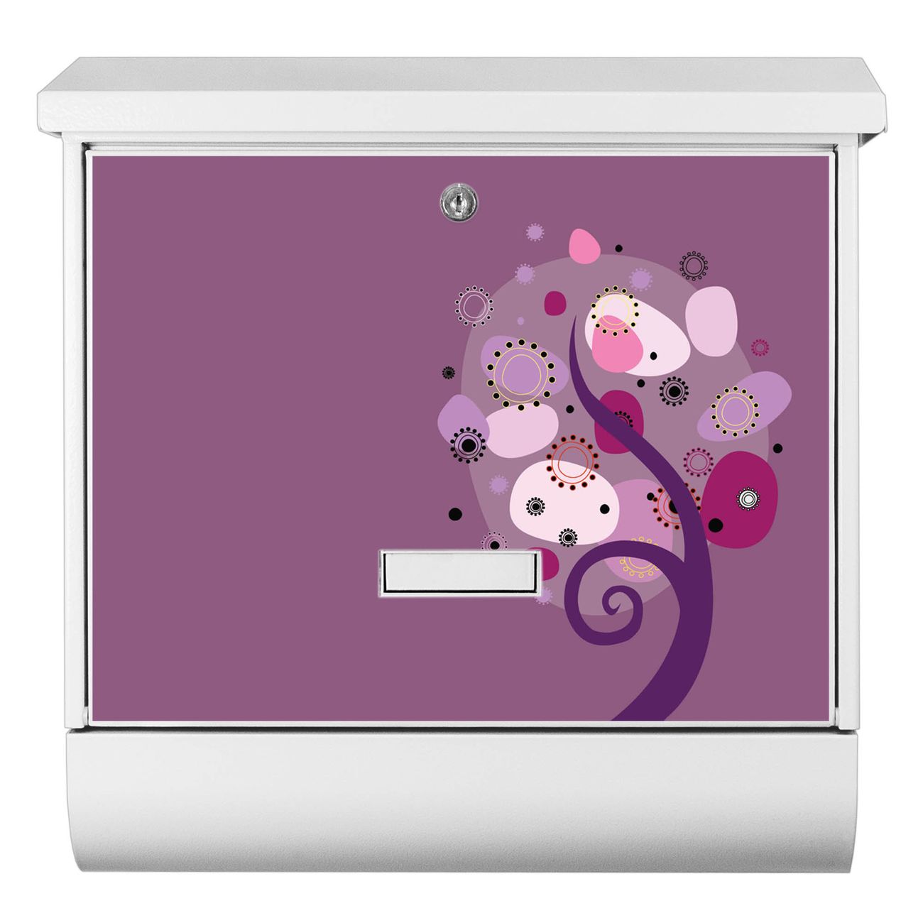 Der BURG-WÄCHTER Stahl Briefkasten mit Lila Baum Motiv bietet Ihnen mit seinem Fassungsvermögen genügend Platz auch für große A4 Sendungen und Zeitschriften. Das integrierte Regendach schützt Ihre Post vor dem Eindringen von Regen.