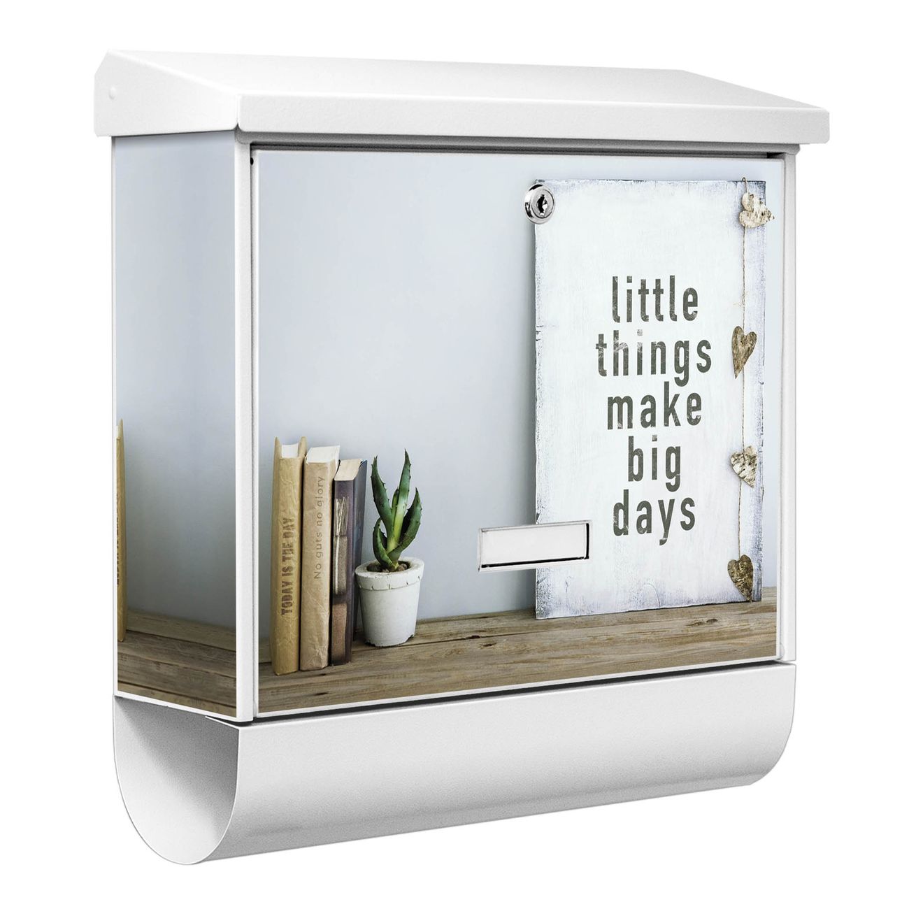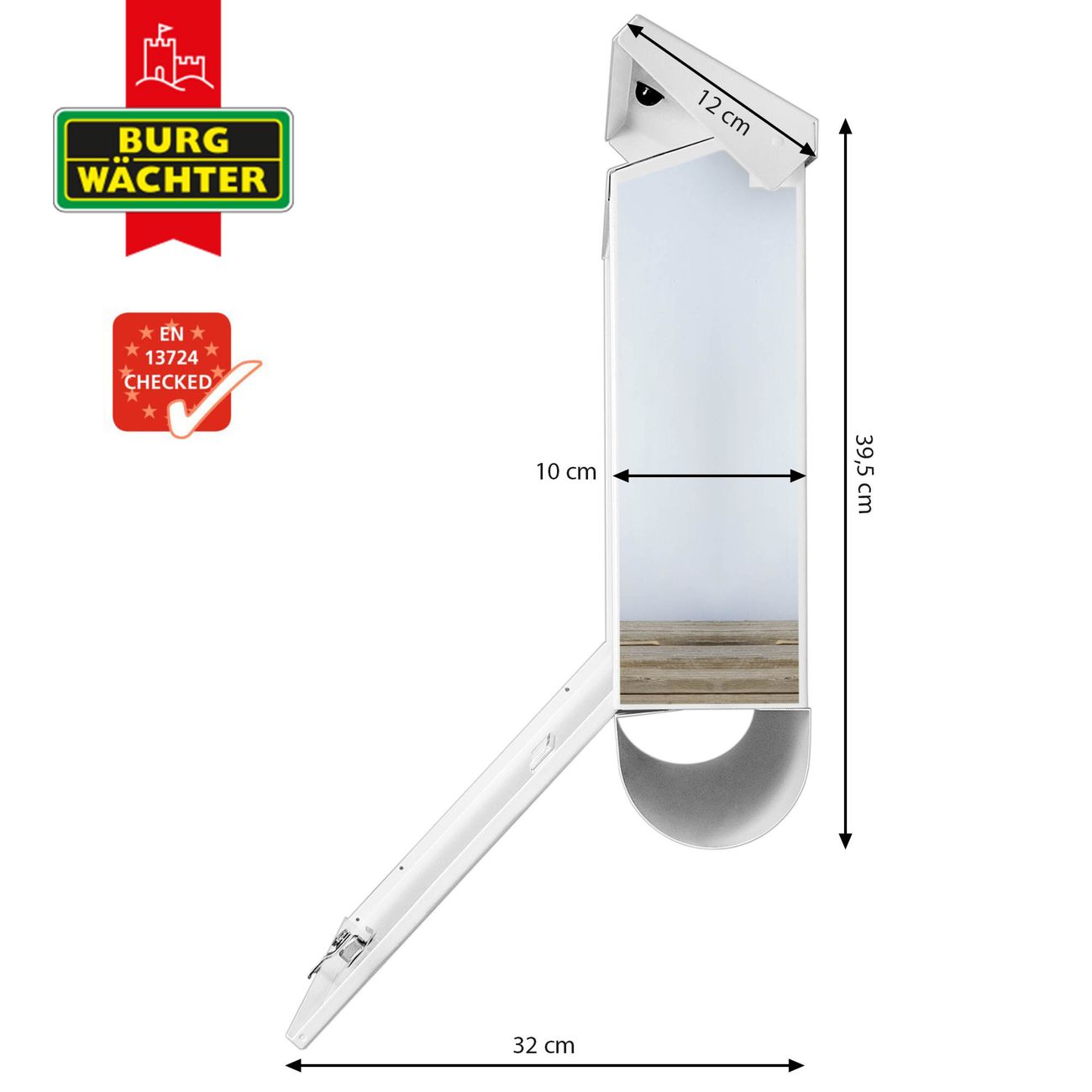 Der BURG-WÄCHTER Stahl Briefkasten mit Little Things Motiv bietet Ihnen mit seinem Fassungsvermögen genügend Platz auch für große A4 Sendungen und Zeitschriften. Das integrierte Regendach schützt Ihre Post vor dem Eindringen von Regen.
