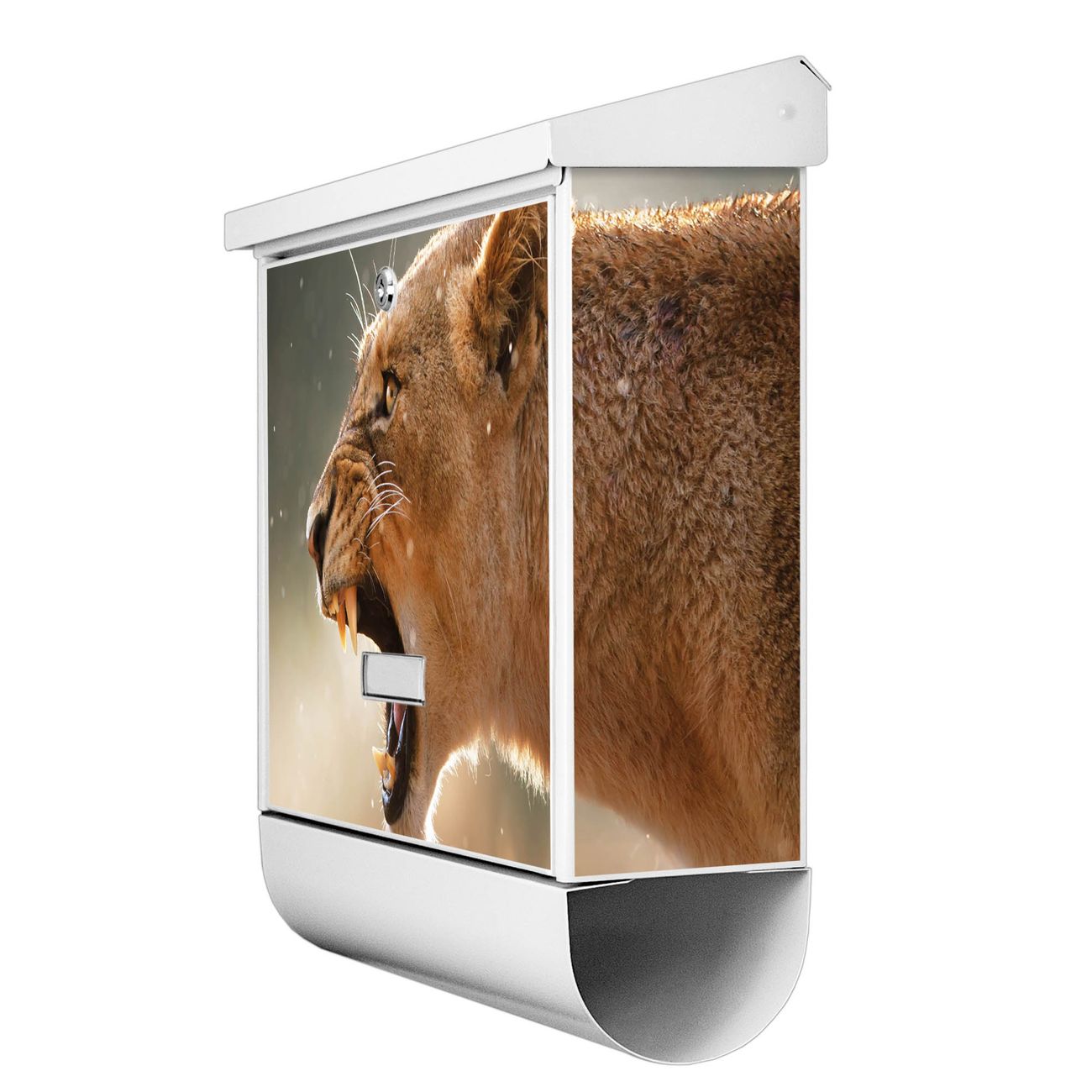 Der BURG-WÄCHTER Stahl Briefkasten mit Löwin Motiv bietet Ihnen mit seinem Fassungsvermögen genügend Platz auch für große A4 Sendungen und Zeitschriften. Das integrierte Regendach schützt Ihre Post vor dem Eindringen von Regen.