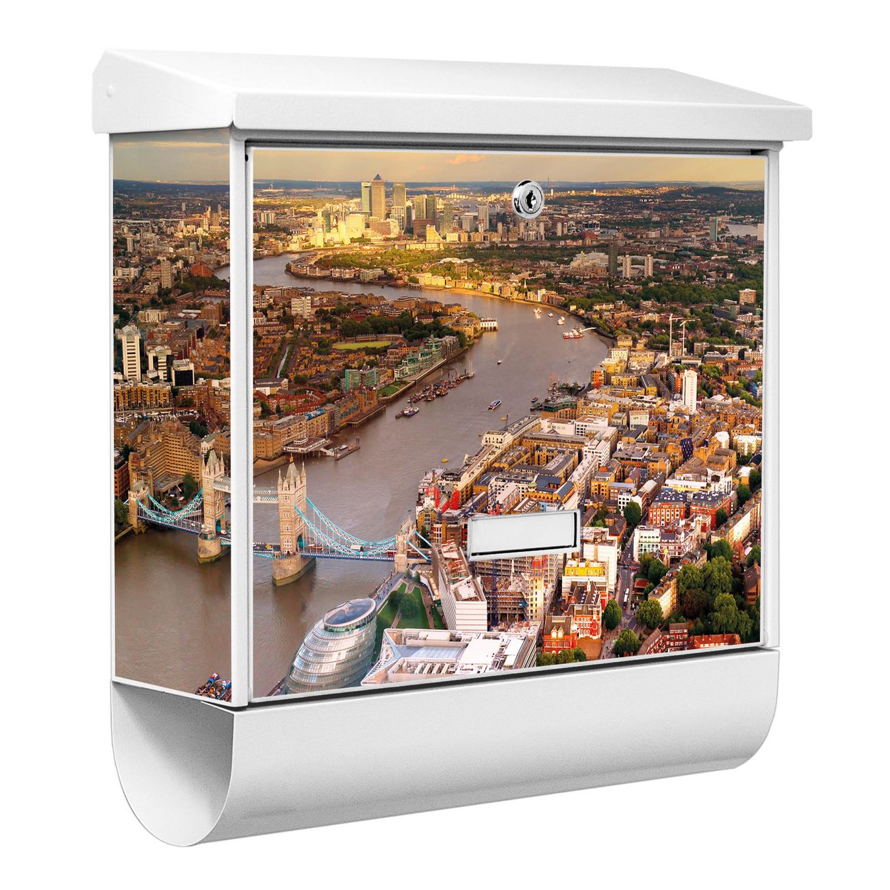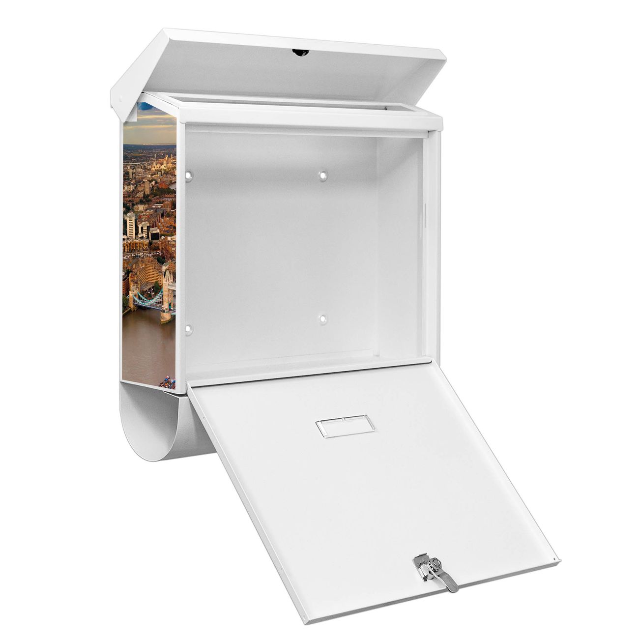 Der BURG-WÄCHTER Stahl Briefkasten mit London Motiv bietet Ihnen mit seinem Fassungsvermögen genügend Platz auch für große A4 Sendungen und Zeitschriften. Das integrierte Regendach schützt Ihre Post vor dem Eindringen von Regen.