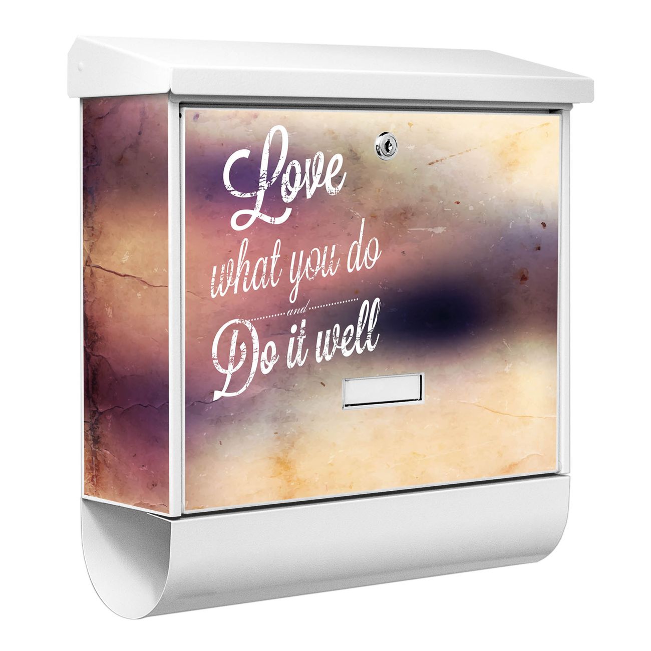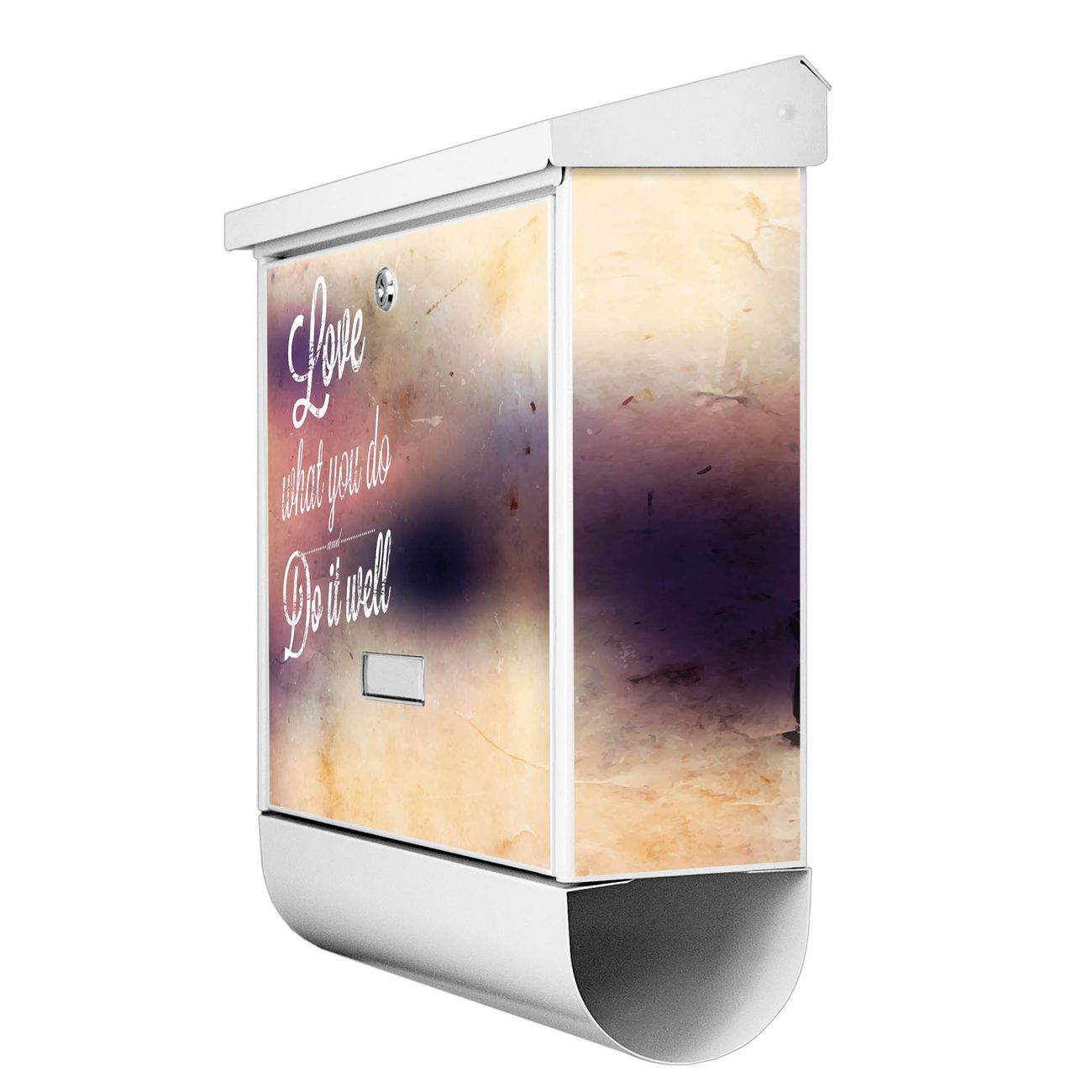 Der BURG-WÄCHTER Stahl Briefkasten mit Love What You Do Motiv bietet Ihnen mit seinem Fassungsvermögen genügend Platz auch für große A4 Sendungen und Zeitschriften. Das integrierte Regendach schützt Ihre Post vor dem Eindringen von Regen.