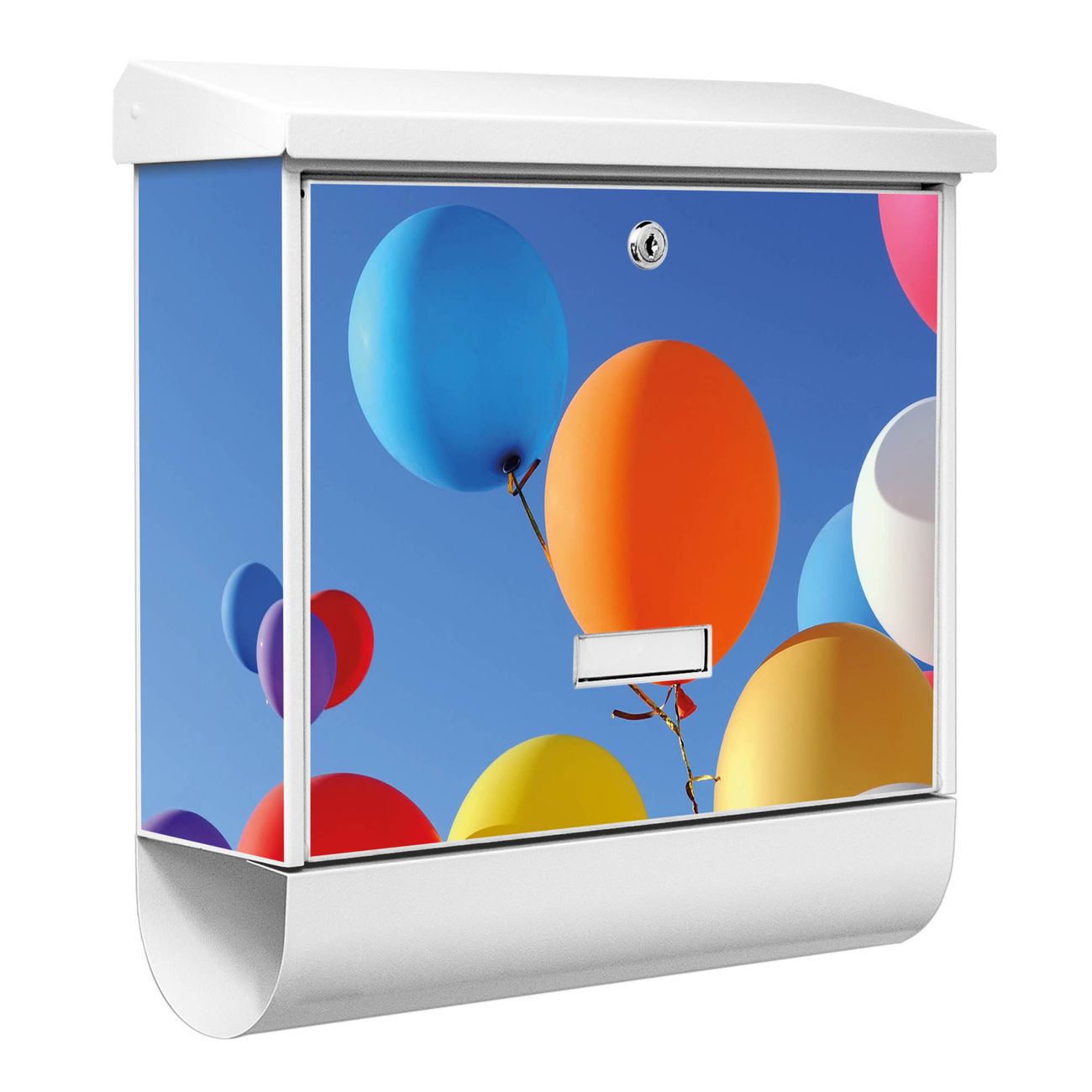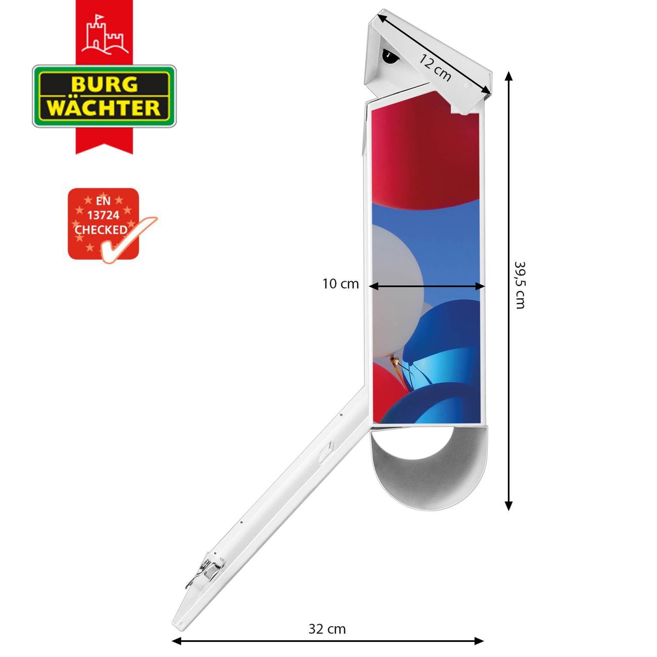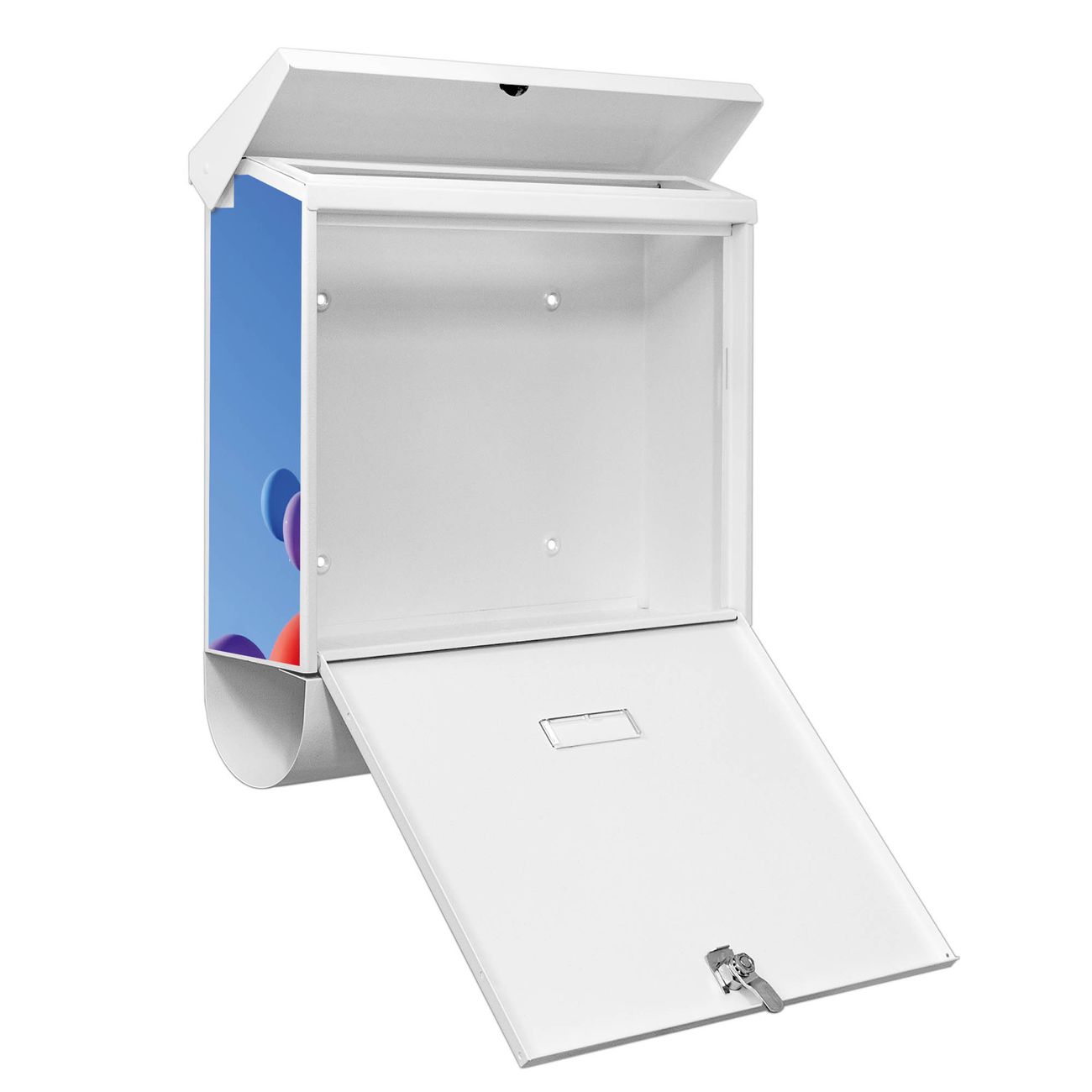 Der BURG-WÄCHTER Stahl Briefkasten mit Luftballons Motiv bietet Ihnen mit seinem Fassungsvermögen genügend Platz auch für große A4 Sendungen und Zeitschriften. Das integrierte Regendach schützt Ihre Post vor dem Eindringen von Regen.