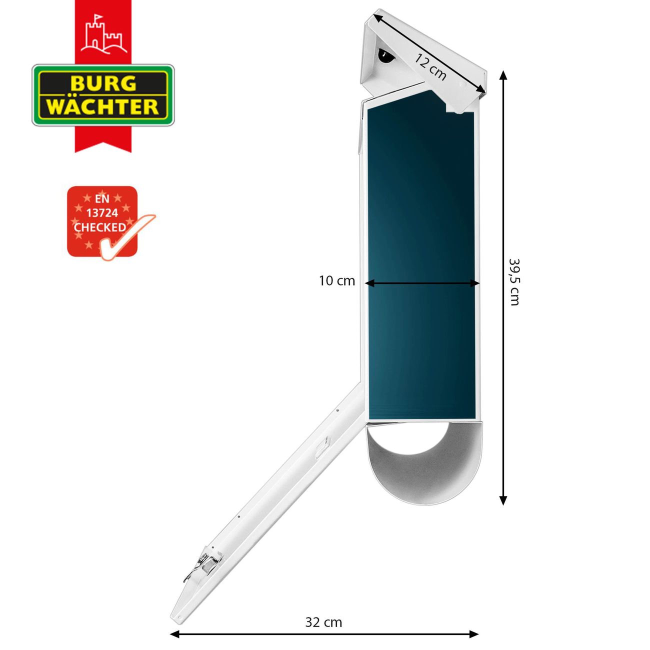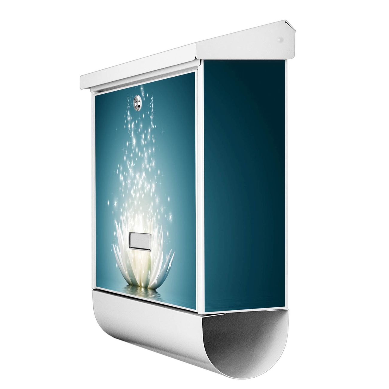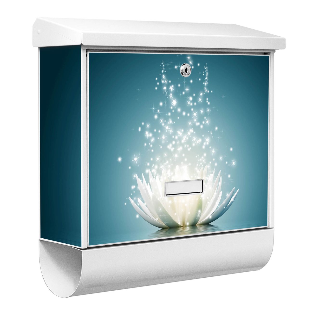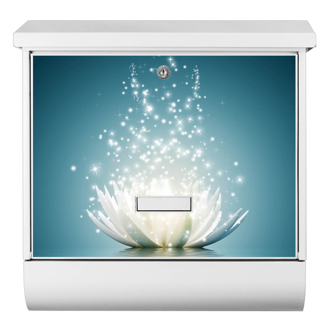 Der BURG-WÄCHTER Stahl Briefkasten mit Magische Lotusblüte Motiv bietet Ihnen mit seinem Fassungsvermögen genügend Platz auch für große A4 Sendungen und Zeitschriften. Das integrierte Regendach schützt Ihre Post vor dem Eindringen von Regen.