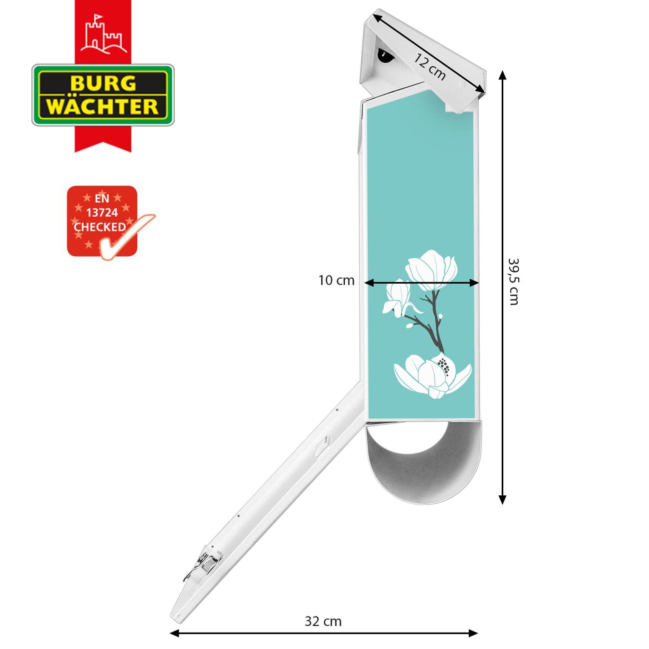 Der BURG-WÄCHTER Stahl Briefkasten mit Magnolien Motiv bietet Ihnen mit seinem Fassungsvermögen genügend Platz auch für große A4 Sendungen und Zeitschriften. Das integrierte Regendach schützt Ihre Post vor dem Eindringen von Regen.